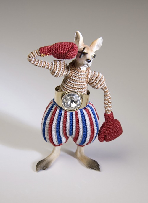 3. “This is Billy Bang, a kangaroo dressed in the colors of the American flag. Rodeo clowns also wear red, white and blue – that's another allusion. He's wearing boxing gloves. One of his eyes is a black cross, like the cartoonists draw when it has to look like the eye has been hit. The other eye is a blue sapphire. In English, the term for a bruised eye is 'black eye' [in Dutch, a bruised eye is called a 'blue eye' – ed.], and that's why he has an injured eye that is colored black. I use such plays on words in my work.”