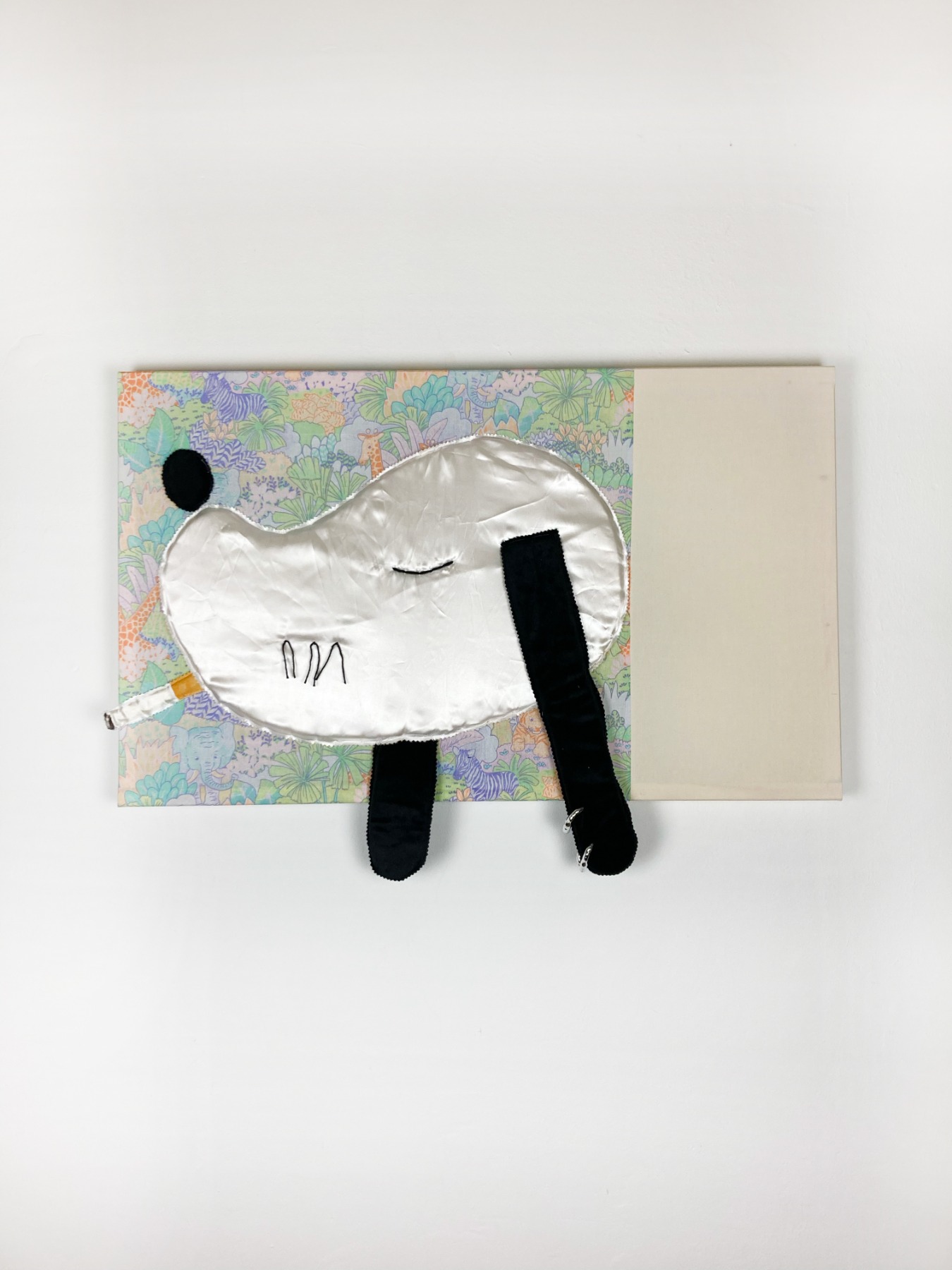 Daniel Ferstl, Jubilee (1978), 2023, satin, velours, yarn, cotton, wool, wood, pvc, canvas, 55 x 90cm. Courtesy of Bech Risvig Collection