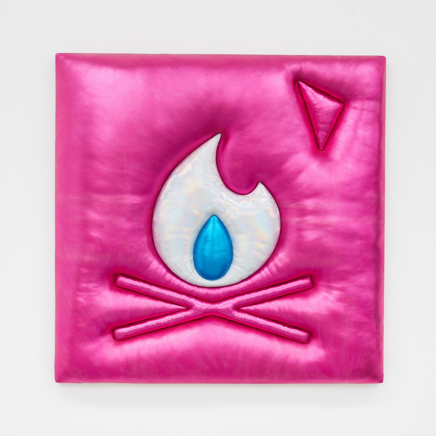 Jon Young, Go, 2020, Iridescent fabric, wood and batting, 71 x 71 x 8 cm. Courtesy of Bech Risvig Collection