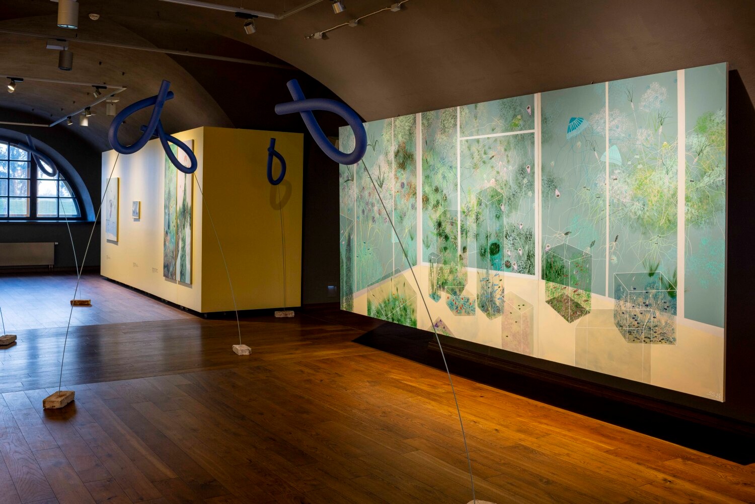 Sandra Strēle has long worked in large formats. This is particularly striking given the chronic shortage of studio space that dogs Latvian artists. Yet she has painted for years as if this lack of space did not apply to her; as if her canvases were conceived and realised in other, less austere circumstances, where one isn’t limited to thinking in survival mode but can breathe deeply and, with imagination, lift the ceiling or push a wall back by twenty centimetres. However, when a large-format painting, created in such imaginatively expanded space, enters the exhibition hall, its spatial logic shifts – for the exhibition space is never the same as the space of creation. The word “conflict” already suggests the potential for new relations: something unsettled, then reconfigured in a different sequence.