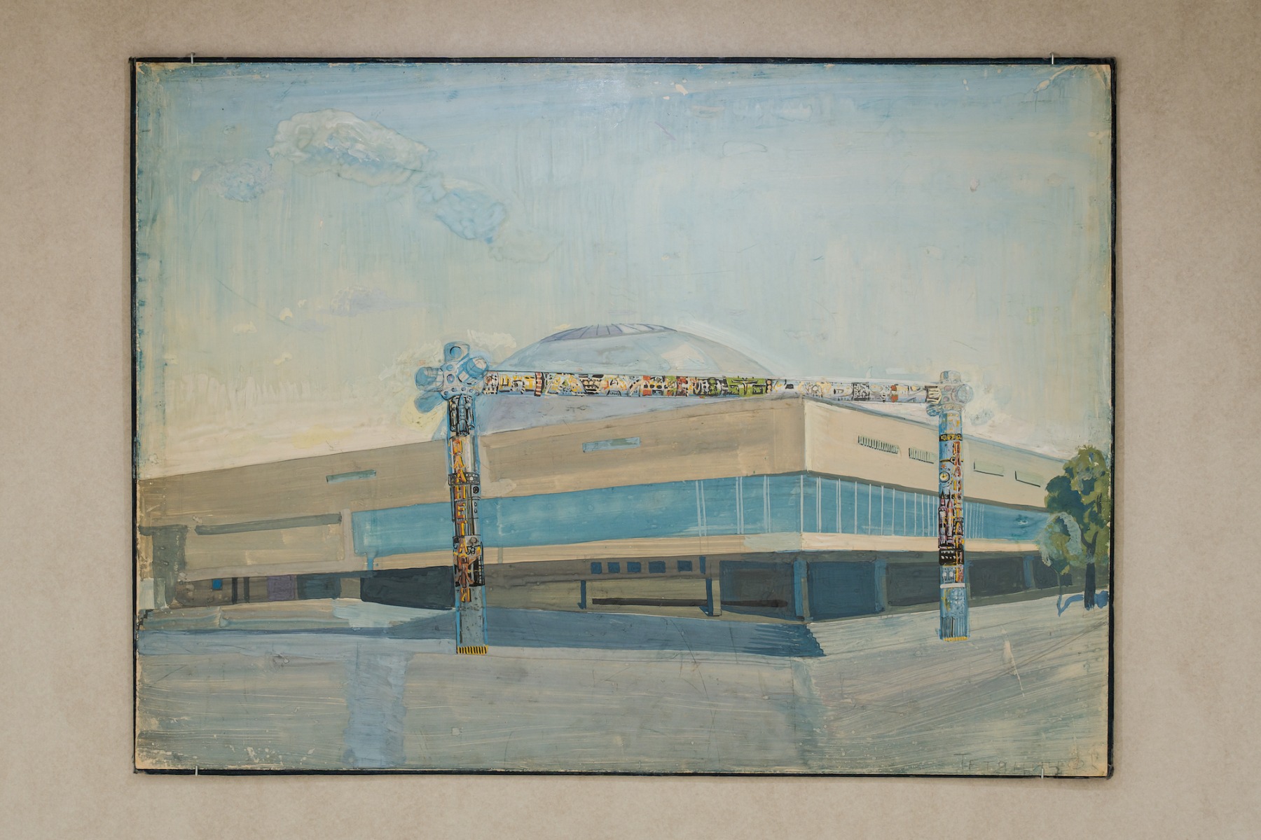 Fedir Tetianych, “Sketch for the Design Project of Kyiv Planetarium”, 1980s. Cardboard, watercolor, gouache, 61,5 × 84 cm. Courtesy the artist’s family. “Bells and Cannons”, Contemporary Art Centre, 2025. Photographer: Andrej Vasilenko