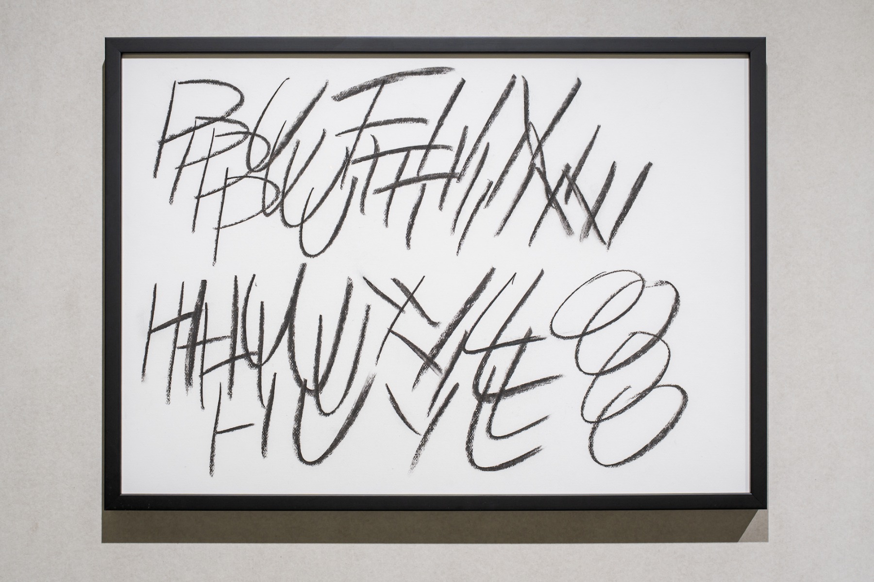 Nikita Kadan, “Putin Huilo No. 1”, 2022. Charcoal on paper, 42 × 60 cm, from the series ‘Repeating Speech’. Courtesy of the artist and Voloshyn Gallery, Kyiv. “Bells and Cannons”, Contemporary Art Centre, 2025. Photographer: Andrej Vasilenko