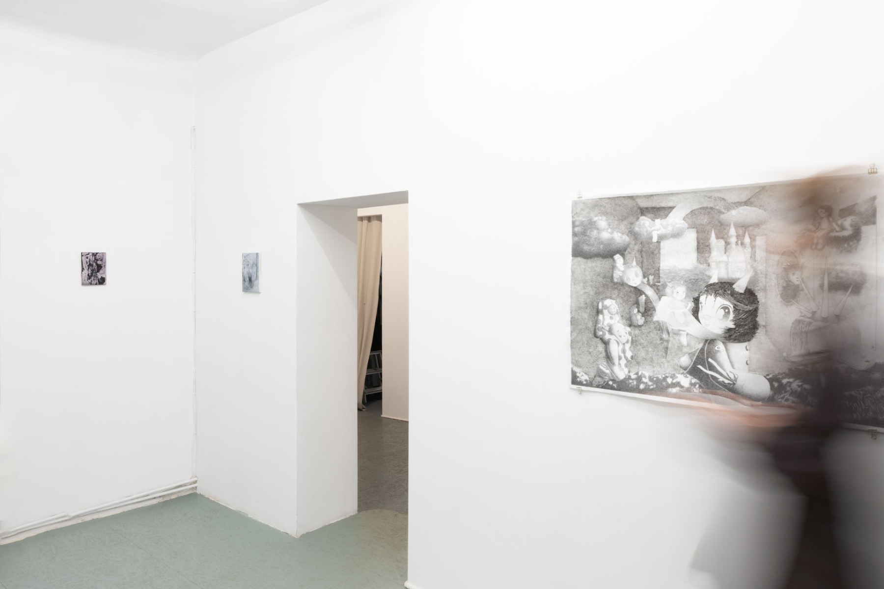This exhibition could be seen as a sort of tangent from my diploma work at LMA [Art Academy of Latvia], where I was making imaginative drawings of my apartment and some of the items inside. After graduating I started making smaller drawings on the same type of paper, which were attempts to depict more intimate fragments of life at home. These are almost like a zoom-in from the larger drawings I was making at LMA. I knew I wanted to show those smaller drawings together in an exhibition somehow. When the people at DOM Gallery invited me, it was clear these homey portraits would be the foundation for the show there. I’ve also had this plan for a while to make similar drawings to those I made of my apartment, but for other places to which I have a personal or sentimental connection. So I decided to photograph the DOM gallery space and make a drawing in that format.