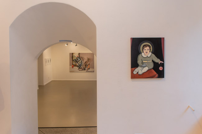Meanwhile Plentauskaitė is exhibiting her latest works and the show represents a continuation of her previous exhibition Prop Park, “an intimate and sometimes deceptively cosy home”. Personal images drawn from the artist’s intimate environment, childhood and family photos that acquire theatrical quality in the process of being rendered on canvass, de-personified and used as character-puppets in new scenes.