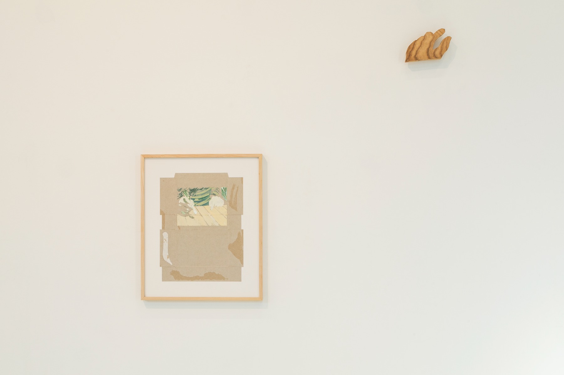 A human being has seen your order, a painting on a folded-out box, was originally made as part of Coverage, an exhibition of boxes that collected together stories, gossip and rumors, named after Lyn Hejinian’s poem “Coverage”: