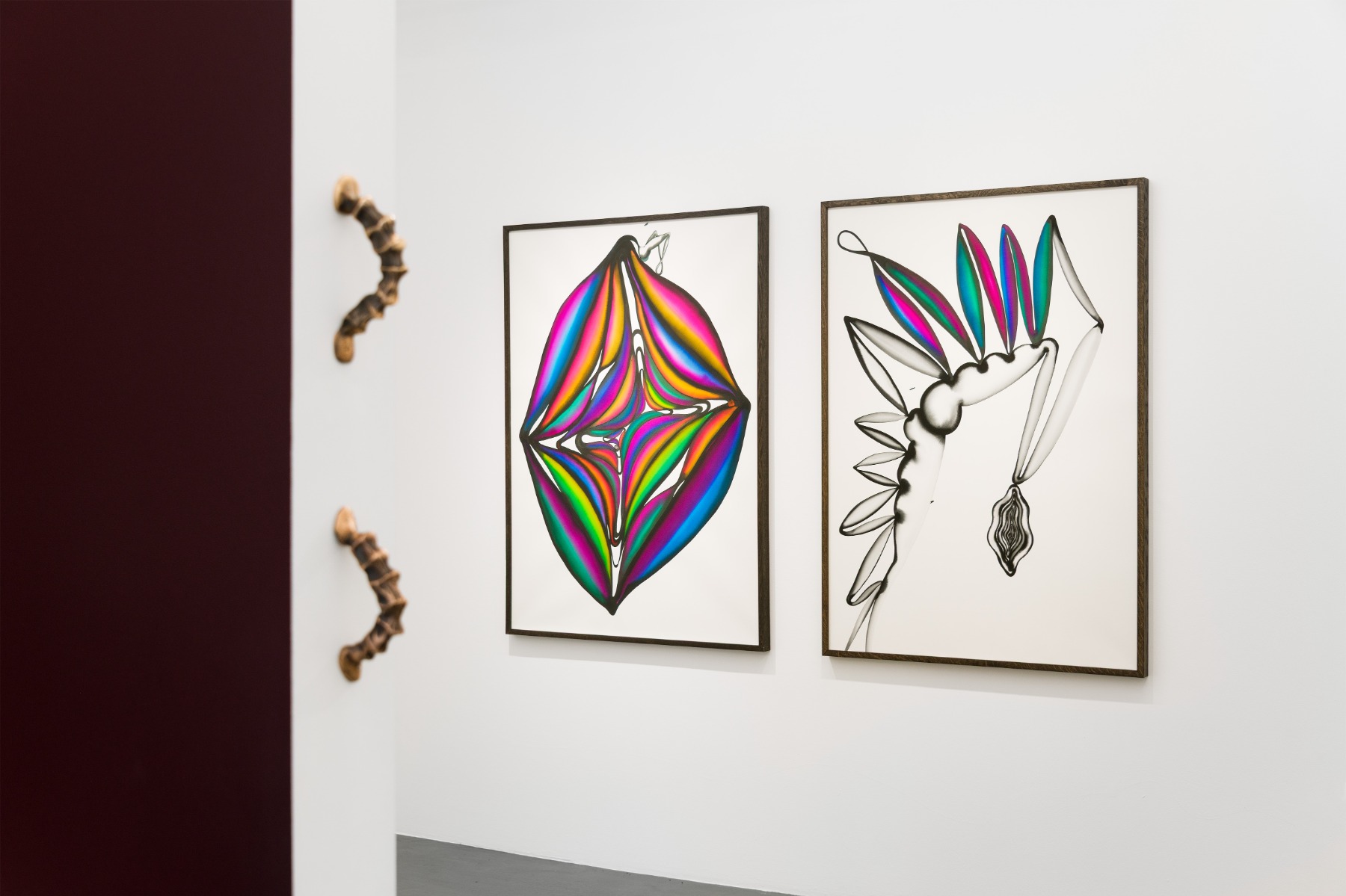 Sabīne Vernere, Dynamis (2026) and Escadron Volant (2026), from left to right. View from a solo exhibition Femme Forte by Sabīne Vernere at Kogo Gallery, 2026.