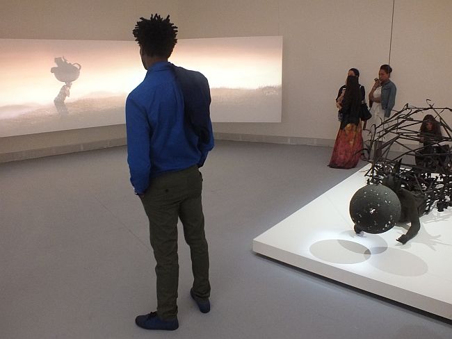 The audience in front of the video by a Kenyan artist Wangeti Mutu “The End of Carrying All”. Photo: Sergey Khachaturov