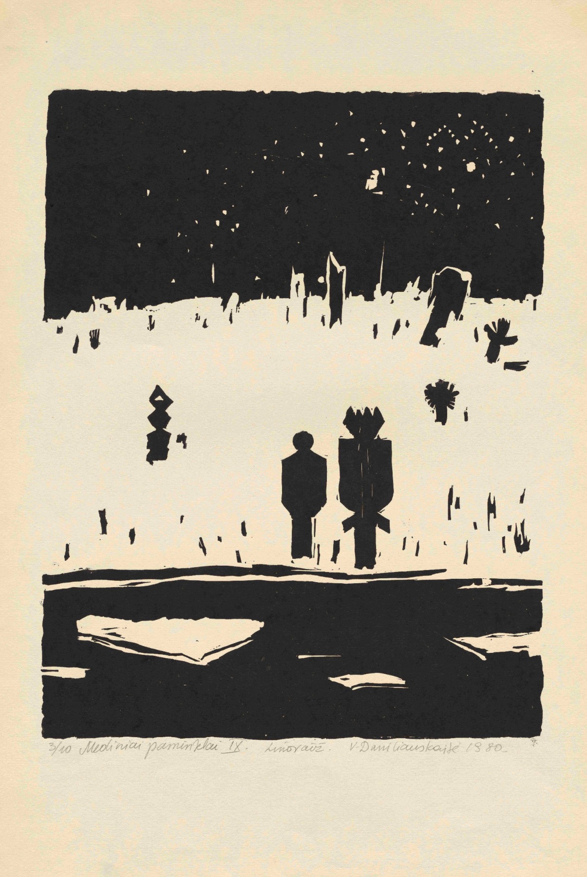 Viktorija Daniliauskaitė, from the series Wooden Monuments , 1980, linocut on paper