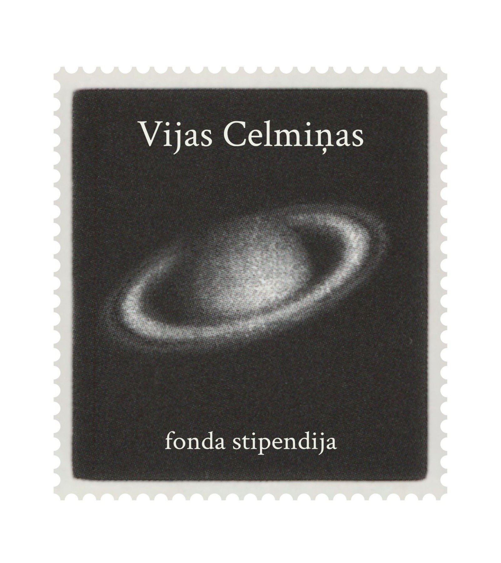 Vijas Celmiņas fonda stipendijas logo ar Saturnu izveidojusi māksliniece Sarmīte Māliņa, iedvesmojoties no LNMM kolekcijas darba – Vijas Celmiņas litogrāfijas “Saturna markas” (1995). Kosmosa iekarošanas ēra 20. gadsimta 60. gadu beigās radīja Celmiņas interesi par kosmosā uzņemtajiem kadriem. Saturnu viņa attēlojusi vairākos darbos, bet “Saturna markas” radās kā konceptuāls komentārs par kosmosa tematikas ienākšanu popkultūrā.