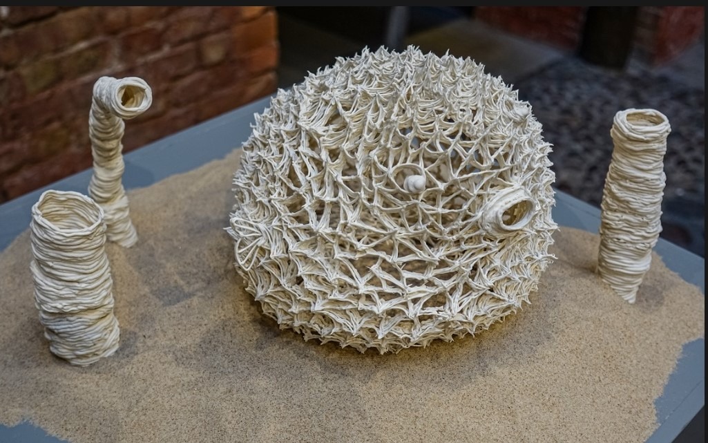 ISSP galerijā māksliniece prezentē šobrīd vairākās ģeogrāfiskās vietās – Itālijā un ārpus tās – notiekošo izpēti, pārveidojot galeriju par dzīvu arhīvu. Izstādē redzami Rīgas arhitektūras ainavas fragmenti, kuros atmiņa parādās pārveidotos mērogos un kontekstos. Tādējādi mākslinieces darbos matērija kļūst par kolektīvās vēstures nesēju.