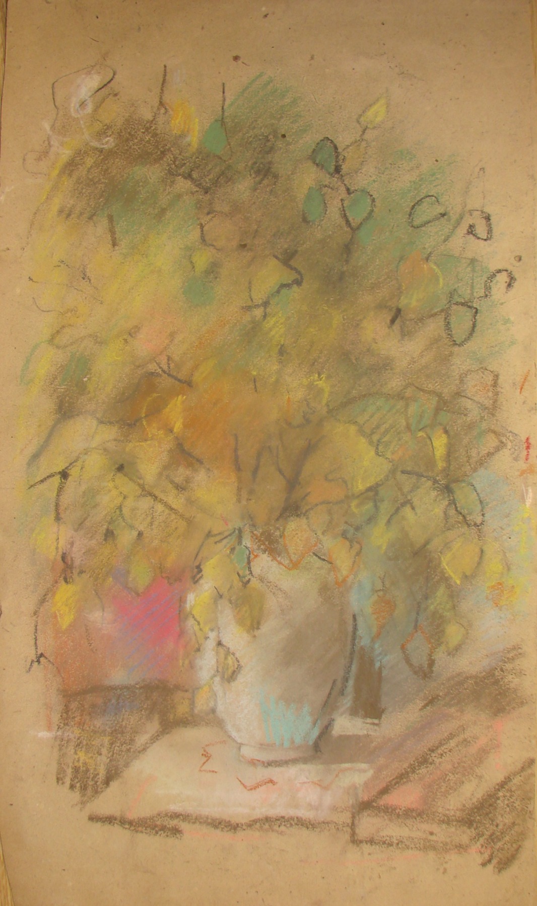 Aleksandra Beļcova. Rudens klusā daba. 20. gs. 50.–60. gadi. Papīrs, pastelis. SBM kolekcija