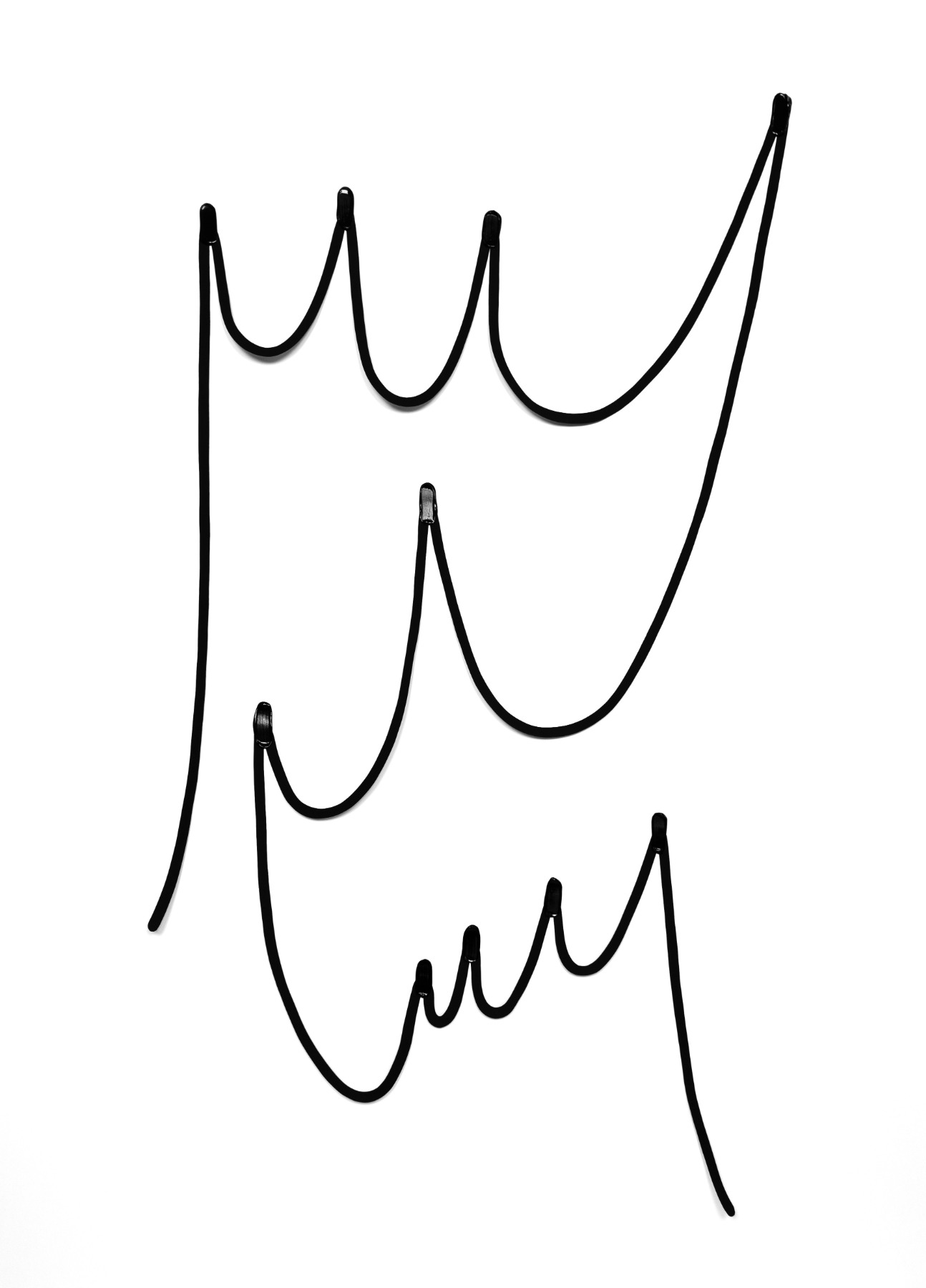 Tās ir domas par zīmējumu un līniju. Kā parādīt domu gaitu, neizmantojot valodu? Attēls uz papīra ir ierobežots plaknē, bet līniju var iznest telpā, pakļaut gravitācijas spēkam, piešķirot tai kustības potenciālu. Minimālās un plūstošās formas necenšas attēlot neko konkrētu, taču vērojumā prāts veido asociācijas un meklē atpazīstamo. Darba process ir intuitīvs – viena lieta ved pie nākamās. Te redzams pieturas punkts, nevis beigas.