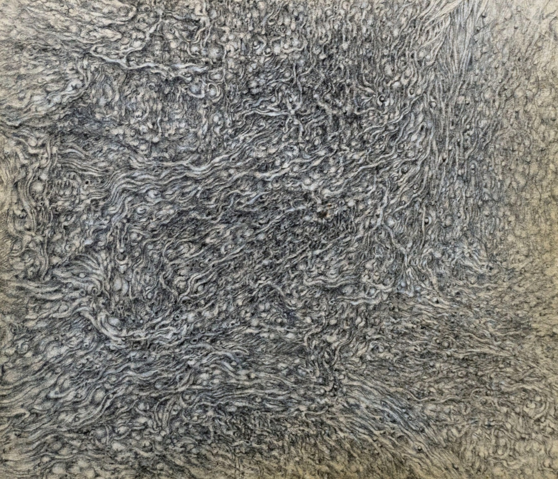 Pētera Kārkliņa mazajos, hermētiskajos zīmējumos tiek fiksēti satraucoši procesi, kas norisinās tieši zem cilvēka dzīves virskārtas. Viņa organisko formu sarežģītība atbilst mākslinieka pedantiskajai piezīmju sistēmai – uz katras lapas aizmugures viņš rūpīgi atzīmē darba tapšanas laiku un apstākļus. Šie viscerālie tēli šķiet ne vien šķidri, plūstoši, bet arī reizēm baisi; kopā ar skopajām, lakoniskajām piezīmēm par datumiem un vietām tie veido intensīvu, koncentrētu pārdomu kopumu par laika ritējumu un mirstības procesiem.