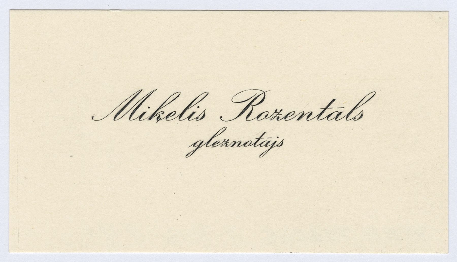 Miķeļa Rozentāla vizītkarte. RTMM 702046