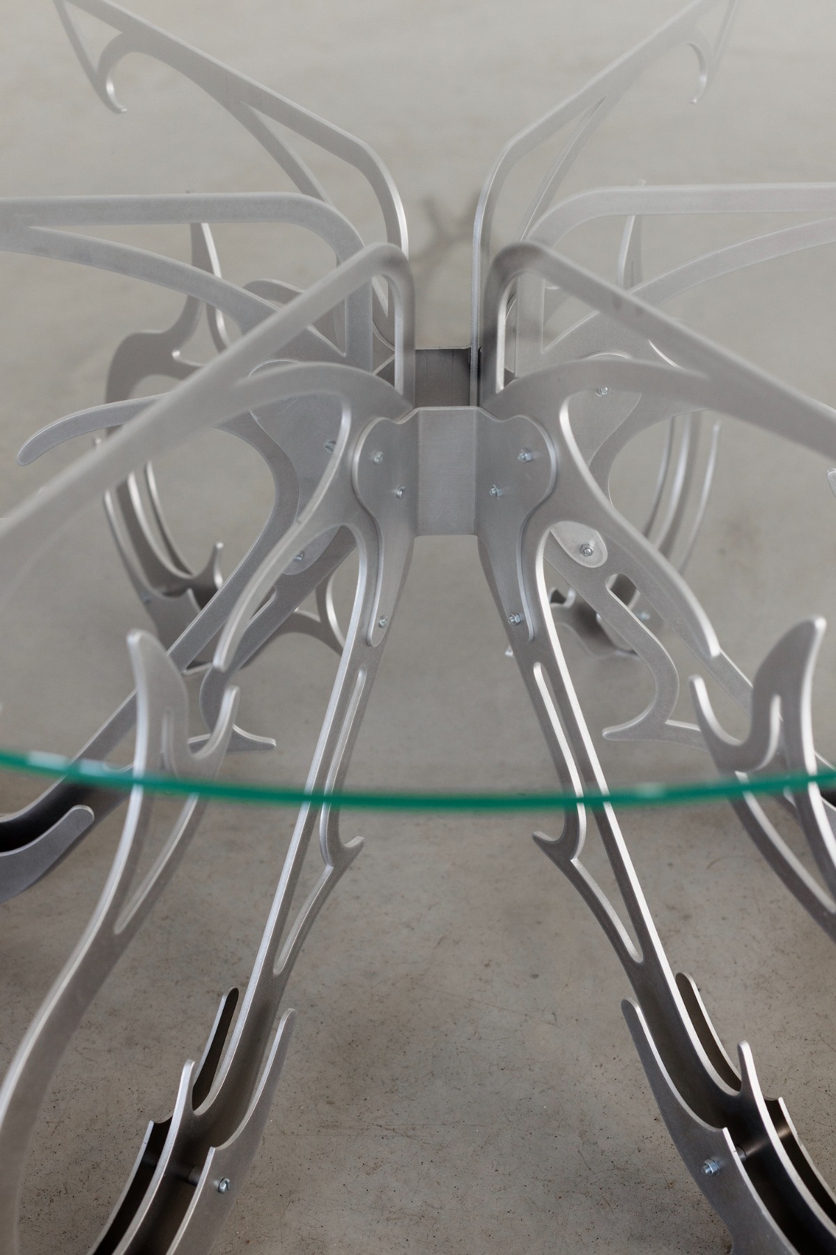 Nezinu. Un arī negribu piešķirt baigo simboliku kaut kādam galdiņam. Man pašam ir interesantākas tās tehniskās detaļas – kā kaut kas ir izstrādāts, kādi savienojumi, interesantas nianses. Kā, piemēram, galdiņam aplokās apkārt tas metāls un samainās tie slāņi savā starpā. Un vēl es it kā cenšos visu laiku tikt prom no asajām formām, bet man galīgi nesanāk. Tās ļoti dabīgi “nāk ārā”. Man ir interesanti skatīties, kā tās ir izmainījušās ar gadiem, kā pārveidojas.