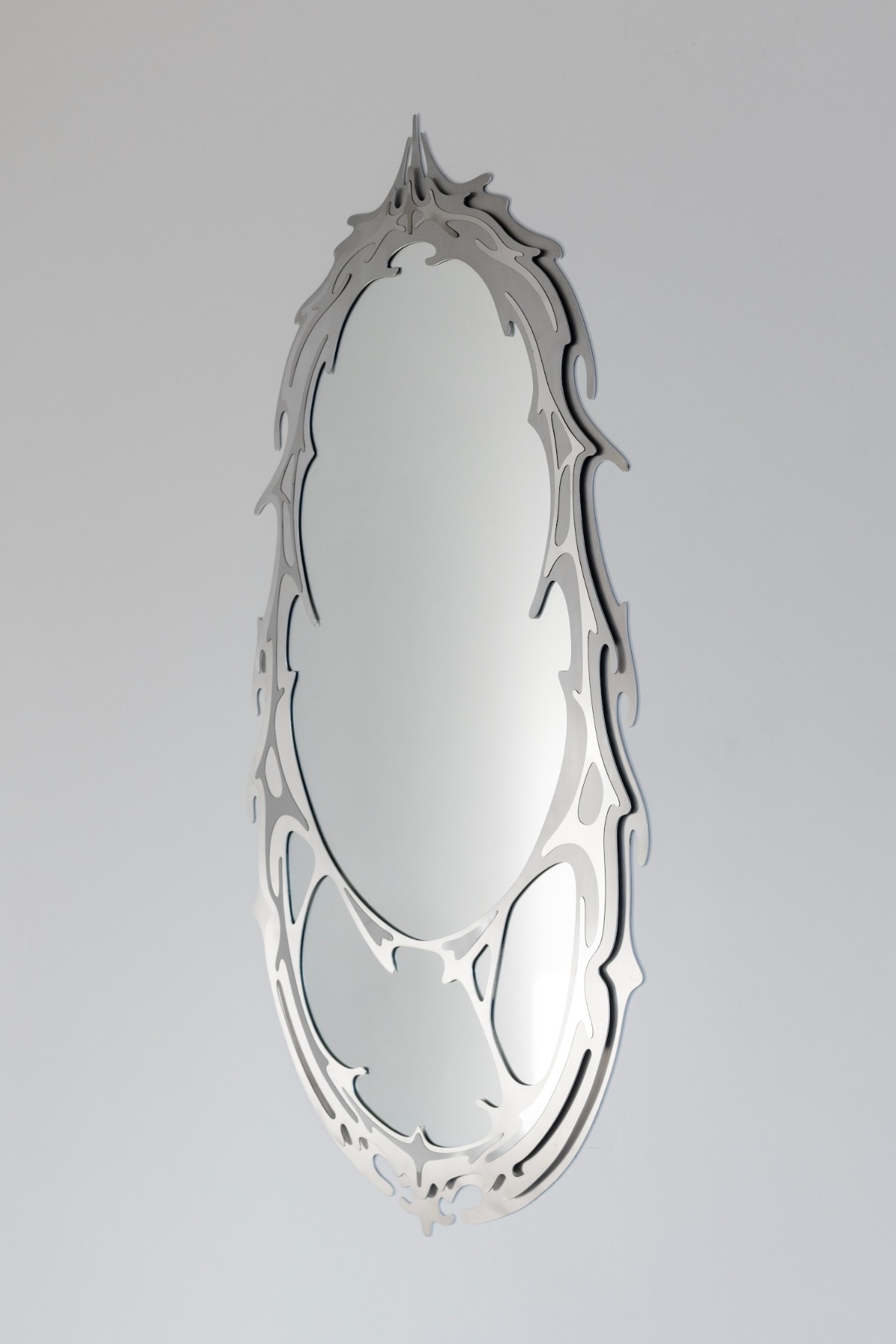 Jā, diezgan intuitīvi. Pirmkārt, daudz kas atkarīgs no materiāla. Alumīnijs, piemēram, ļoti ātri zaudē pulējumu. Nerūsējošo tēraudu var industriāli nopulēt, bet man patīk miksēt. Teiksim, šajā spogulī (rāda ar roku) – rāmis ir no alumīnija, bet mazās detaļas ir no pulēta tērauda, un tās atspīdina tāpat kā spogulis, bet drusku citādi. Tad starp virsmām veidojas interesants interaction.