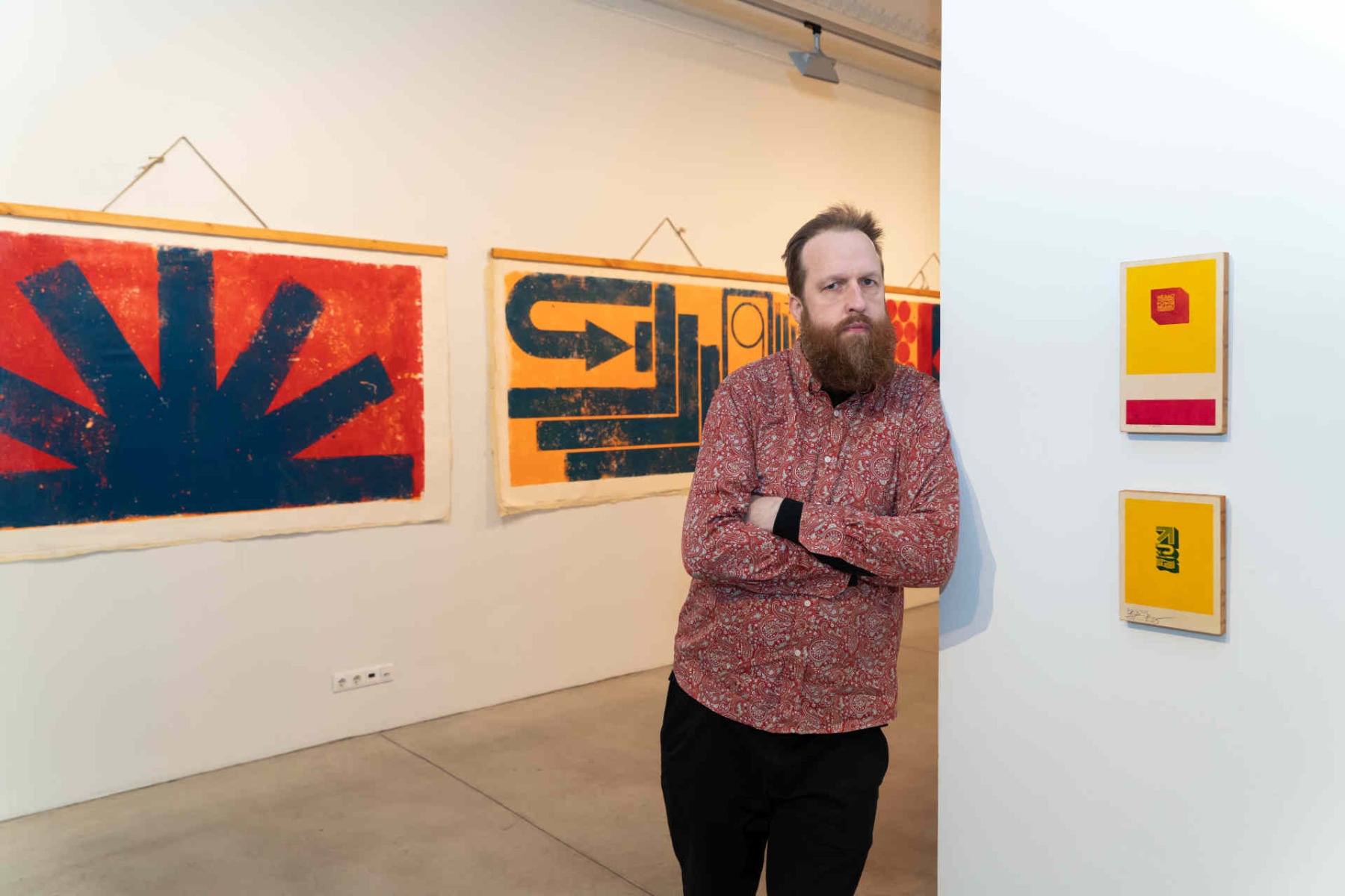 Jau sen bija sakrājusies nieze atvēzēties uz kādu tiešāku un rupjāku tehnisko piegājienu, izvaroties no dažādiem grafikas procesiem piemītošās cīņas ar tehniskajām niansēm vai ierobežojumiem. Vai arī ļoti specifiskiem un dārgiem materiāliem, kā arī reizēm nogurdinošo rēķināšanu, ko un kā darīt, ja prasās strādāt ar lielāku formātu. Tāpēc šoreiz tika nolemts papīra vietā strādāt uz auduma, līdz ar ko pabeigtais darbs pie reizes iegūst karogam radniecīgu tēlu, kas arī ir svarīga izstādes koncepcijas daļa. Drukājot ar alkīda emalju ir iespēja apdzīvot lielus laukumus, gan ar biezu krāsas slāni, gan vietām atstāt nenodrukātas teritorijas, kur dažādie toņi savā starpā pārklājoties vai nepārklājoties nodrošina enerģisku krāsu ņirboņu.