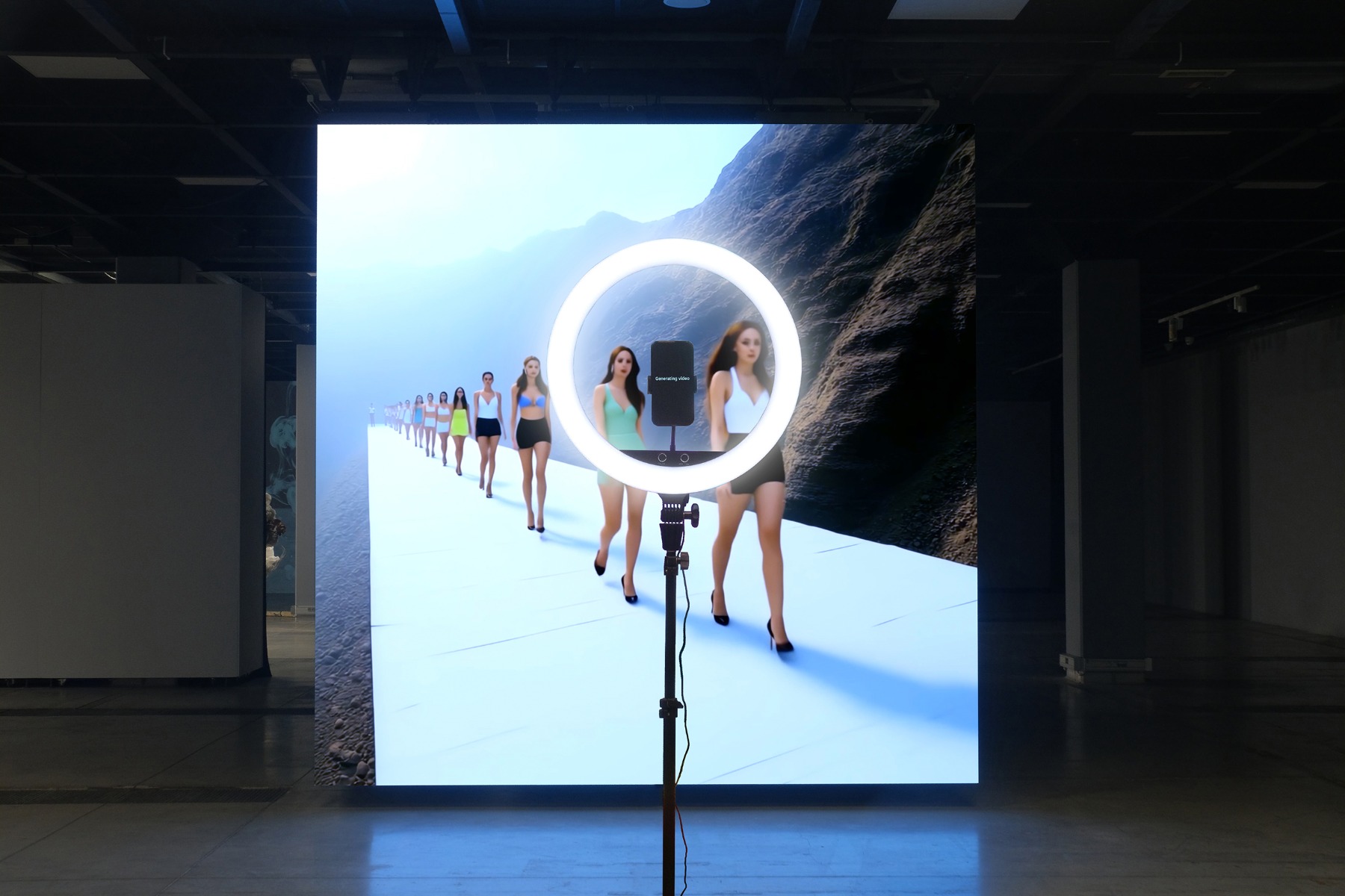 Tas, ko es mēģinu darīt… Iedomājies, ienāk cilvēks izstādē, kurš neko nezina par MI, kurš neko nezina par ChatGPT vai arī zina, ka tāds ir, bet reāli nav to lietojis… Viņš nav saskāries ar attēlu ģenerēšanu un visu to… Kāda, tavuprāt, būtu viņa atskārsme? Viņš kaut kādā ziņā ir nonācis psihedēliskā vidē, pareizi? Taču uzģenerētie tēli nekādā ziņā nav cilvēkiem pilnībā neatpazīstami, jo uzģenerēt tos var tikai tāpēc, ka tās ir milzīgas datu kopas, ko paši cilvēki brīvprātīgi ielādējuši un marķējuši. Es ceru, ka tieši šī tēlu nobīde, kas reizē ir atpazīstama un nesaprotama, strādā ar skatītāja iekšējo telpu.