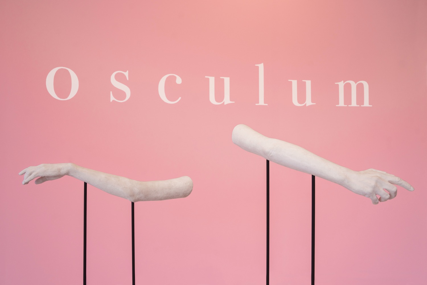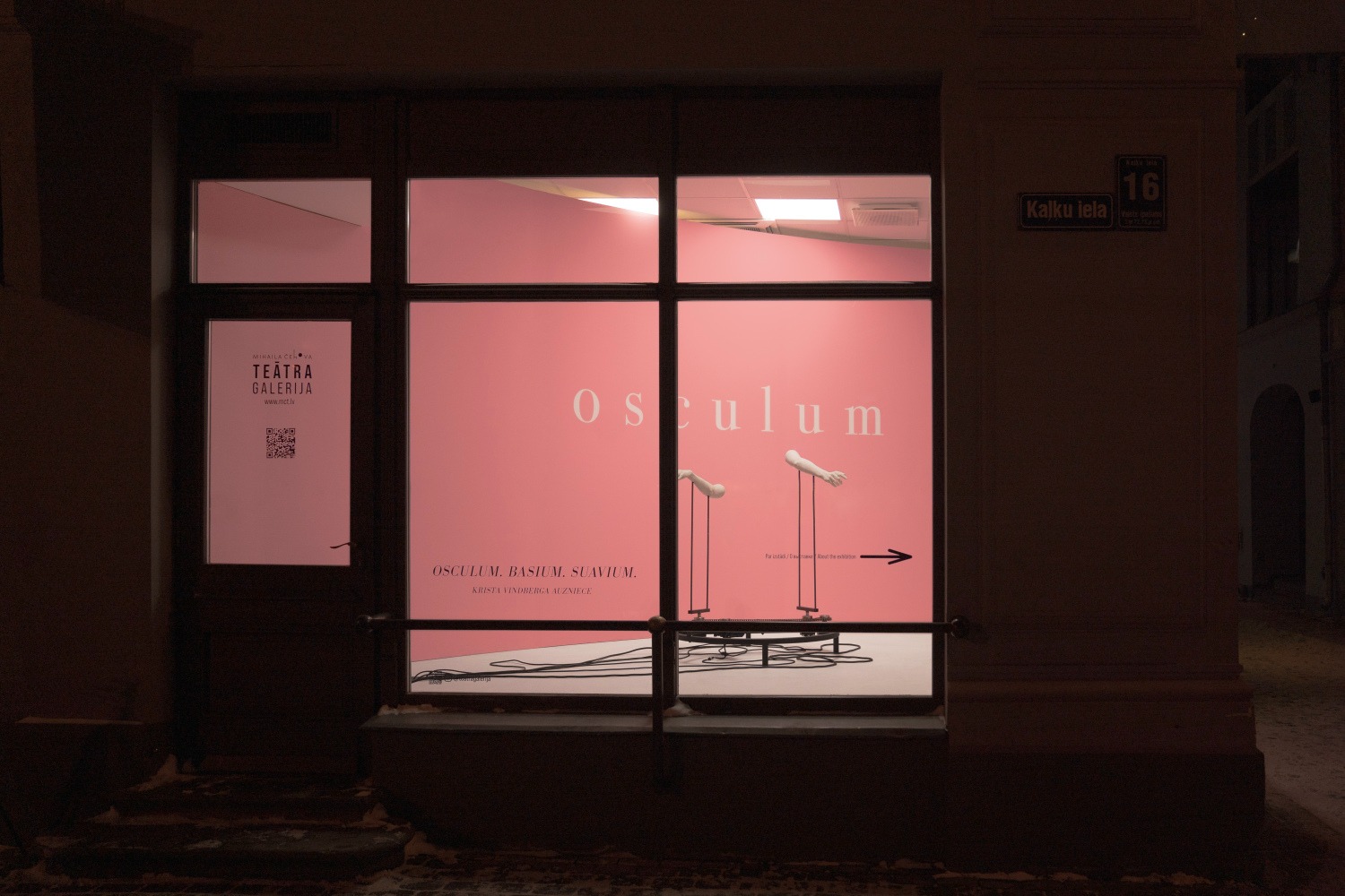 Līdz 13. maijam Čehova teātra galerijā skatāma Kristas Vindbergas Auznieces izstāde “Osculum. Basium. Suavium”, kas pievēršas radīšanas aktam, iedvesmojoties no slavenās Mikelandželo freskas “Ādama radīšana”. Tomēr māksliniece šo tēmu risina pavisam citādi – tehniski un vizuāli smalkā instalācijā, kurā svarīgs cikliskums un viens teju netverams brīdis, kurā satiekas radītāja rokas.
