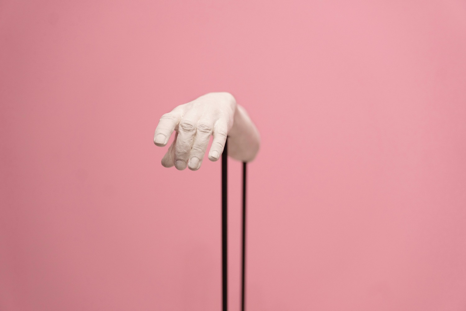 Jā, man patīk turpināšanās, darbu sērijas, labirinti, atsauces un daudzslāņainība. Atkārtojums nav tikai forma, tas ir veids, kā domāt par laiku un uztveri. Pirmās rokas, kuras atlēju betonā, bija 2016. gada izstādei “Sestā pasaules radīšana”, tās bija manas mātes rokas. Tas ir viens no retajiem darbiem, kas visu šo laiku man stāv darbnīcā redzamā veidā kā pastāvīga klātbūtne, kas ar mani turpina strādāt. Un viens no pirmajiem kustības apļiem bija video “Skaidrība” 2013. gadā, kur sieviete ir sasalusi apļa kustībā, kas sākotnēji vizuāli atklājas kā līnija. Sasalšana kustībā un atkārtojums ir tēma, kas mani interesē jau sen. Man šķiet, ka ikdiena ir uzbūvēta atkārtojumā, bet atkārtojums nekad nav identisks, jo mainos es. Pat ja acu priekšā notiekošais nemainās, es katru mirkli esmu cits cilvēks. Tas nozīmē, ka mainās arī viss, ko redzu un kā to uztveru. Tāpat pavisam funkcionāli: spīd saule, un, piemēram, pirkstu saskaršanās kļūst silta, vēl maigāka, atgādina visu vieglo. Ir putenis, kāds bija atklāšanas dienā, kad viss ir balts, ir auksti, un baltās rokas šķiet sasalušas – gandrīz kā no Daugavas ledus, pa kuru visi staigā, izgrebtas – un līdz ar šo domu pieskāriens ir auksts, ass, kā stikls. Ir nakts, un silti rozā sienu telpā atklājas kā intīms pieskāriens, tumsā ieskauts. Tad kāds ierauga Venēras skulptūras attēlu pie sienas un varbūt pirmo reizi apzināti ierauga, ka viņai nav roku. Un tās šķiet kā atrauti locekļi no citādi dzīva organisma, vai kā stāsts no cita laika, kad rokas bija no marmora. Es šādi varētu turpināt vēl ilgi.