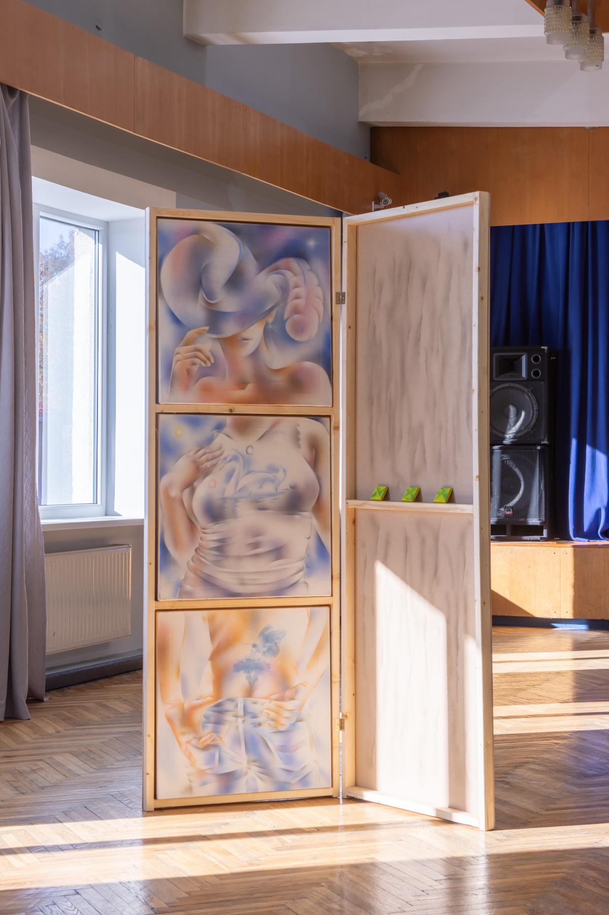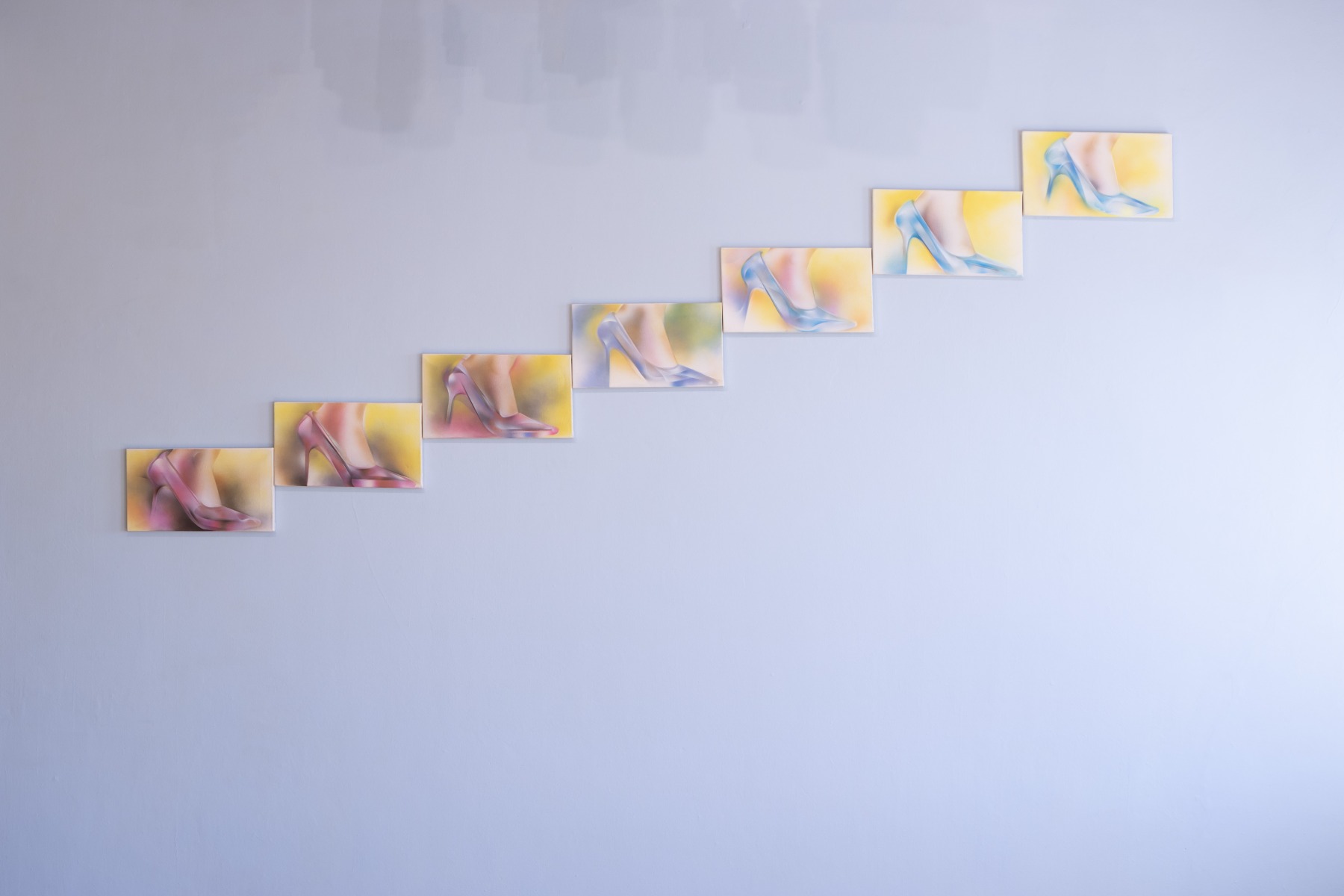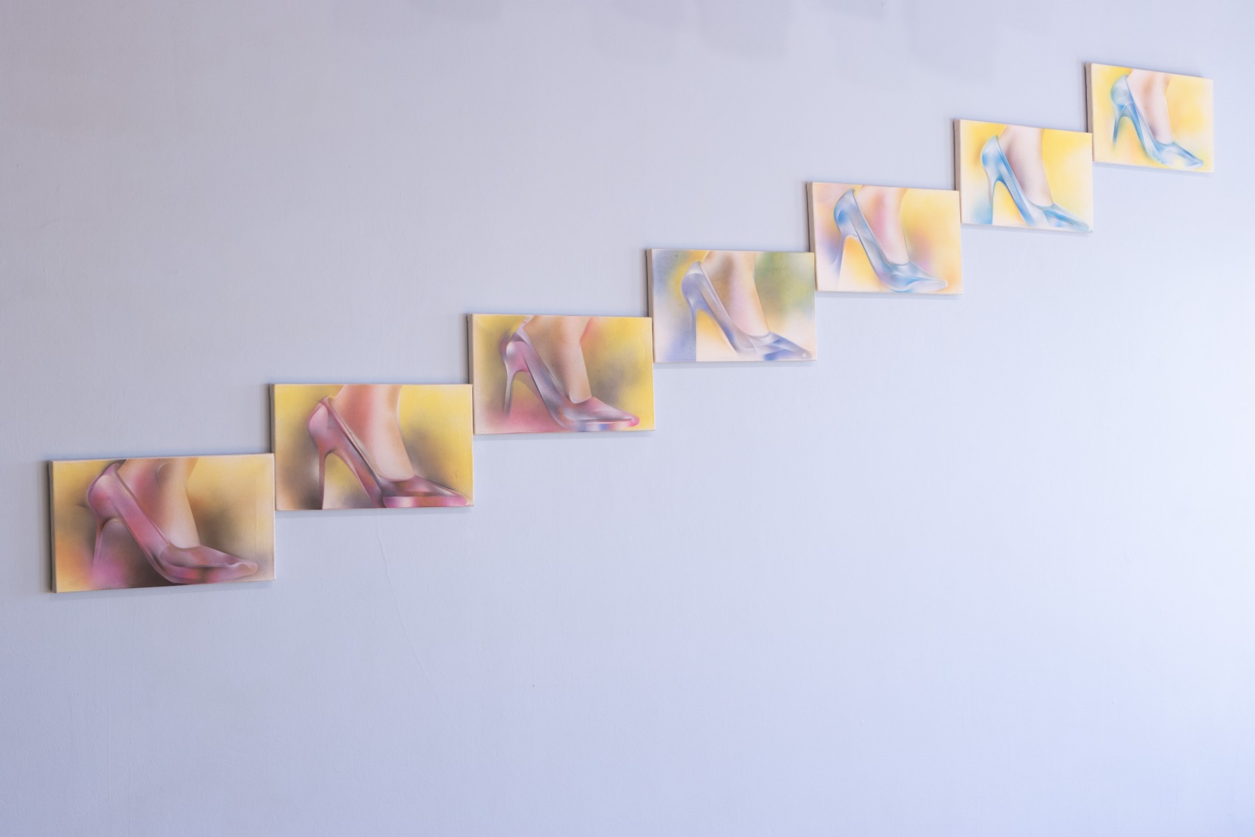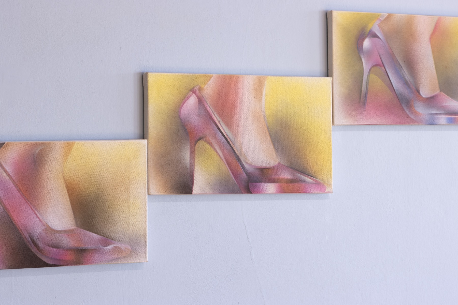 “Glezniecībā mani interesē tīras un skaistas formas, bieži vien saturs ir sekundārs. Sieviešu kurpīte ir tikai kurpīte, bet daudzkārt pavairota uz audekliem, tā veido stāstu un iegūst jaunu nozīmi. Manos darbos bieži vien komiskais spēlējas ar romantisko. Es gleznoju ar aerogrāfu, izmantoju stencilus. Šajā tehnikā darbi veidojas dūmakaini asi, attēlotais saplūst un izplūst, līdzīgi kā sapnis, ko mēģini atcerēties, bet sanāk tikai fragmentāri.