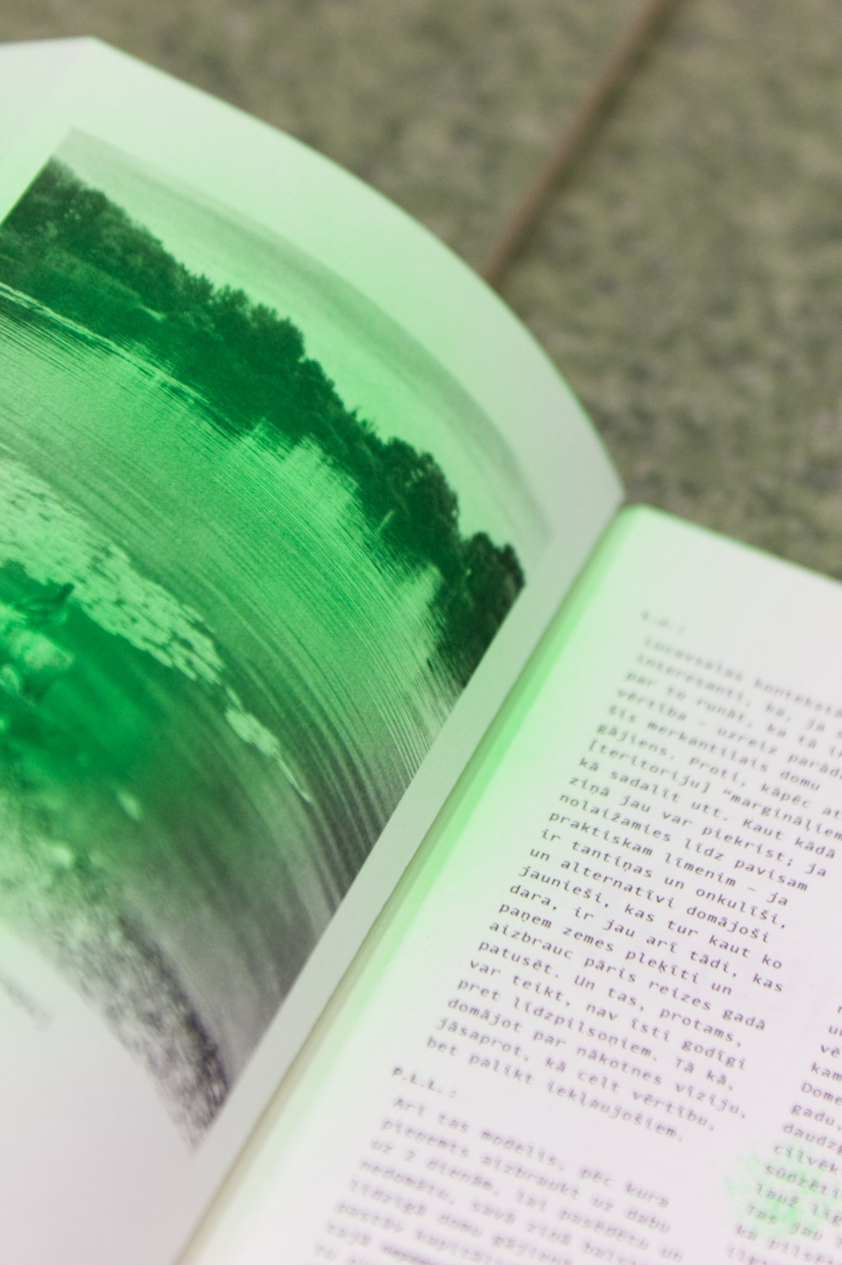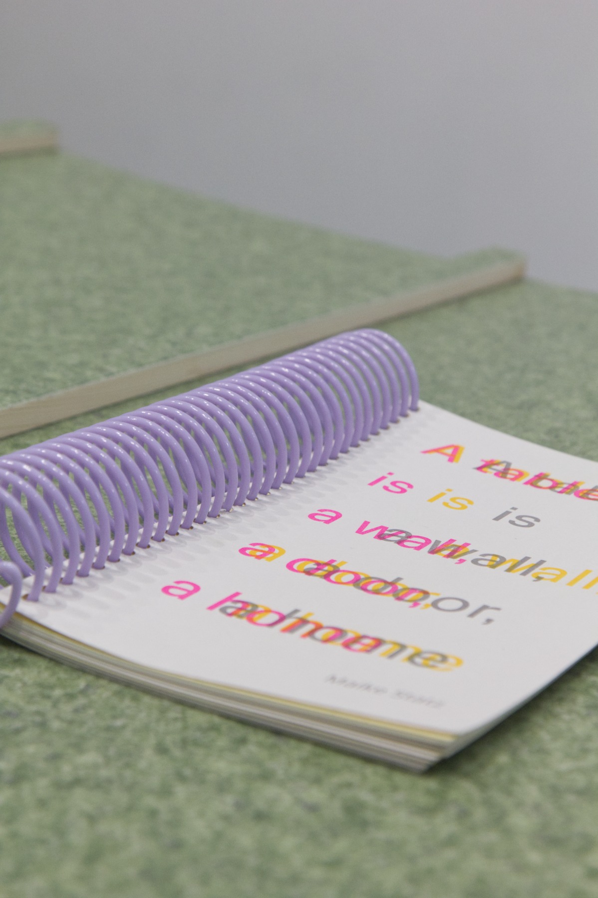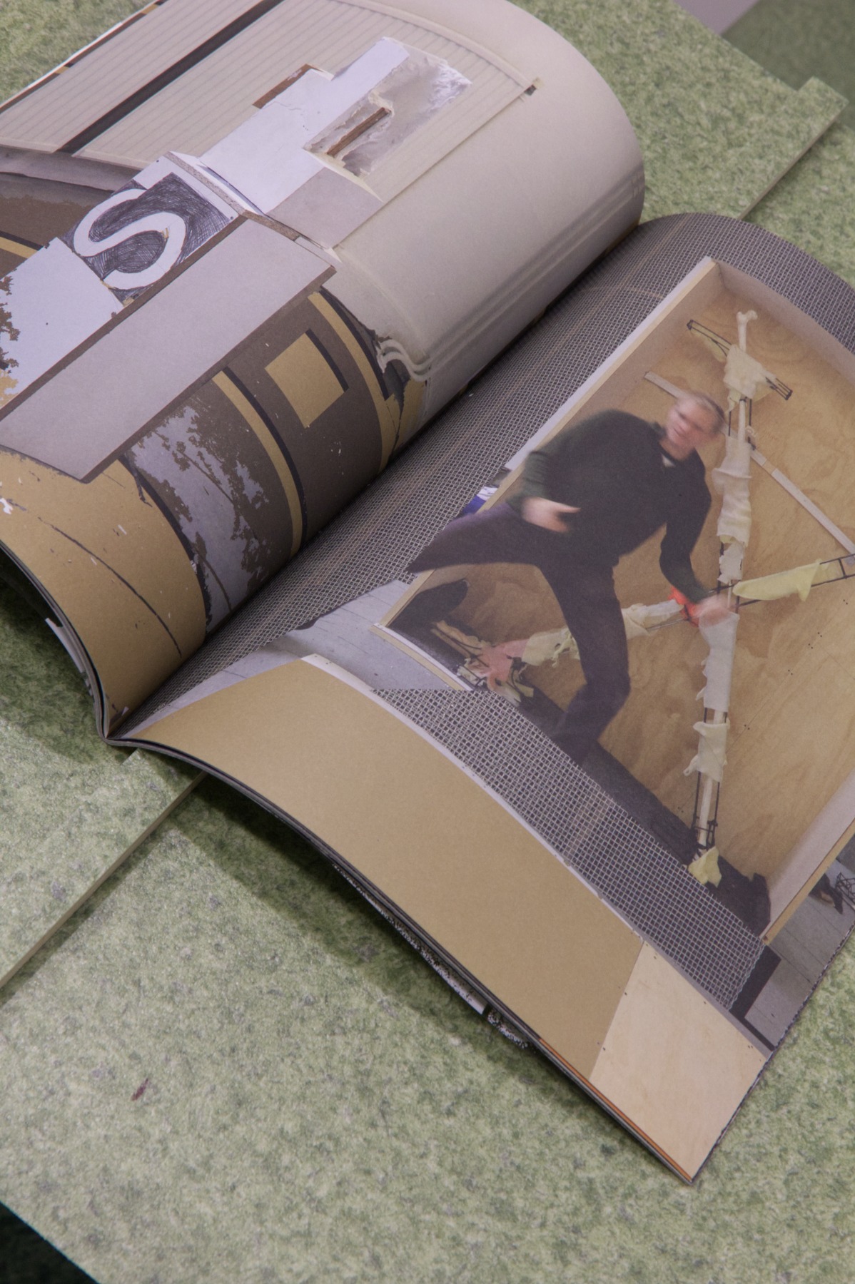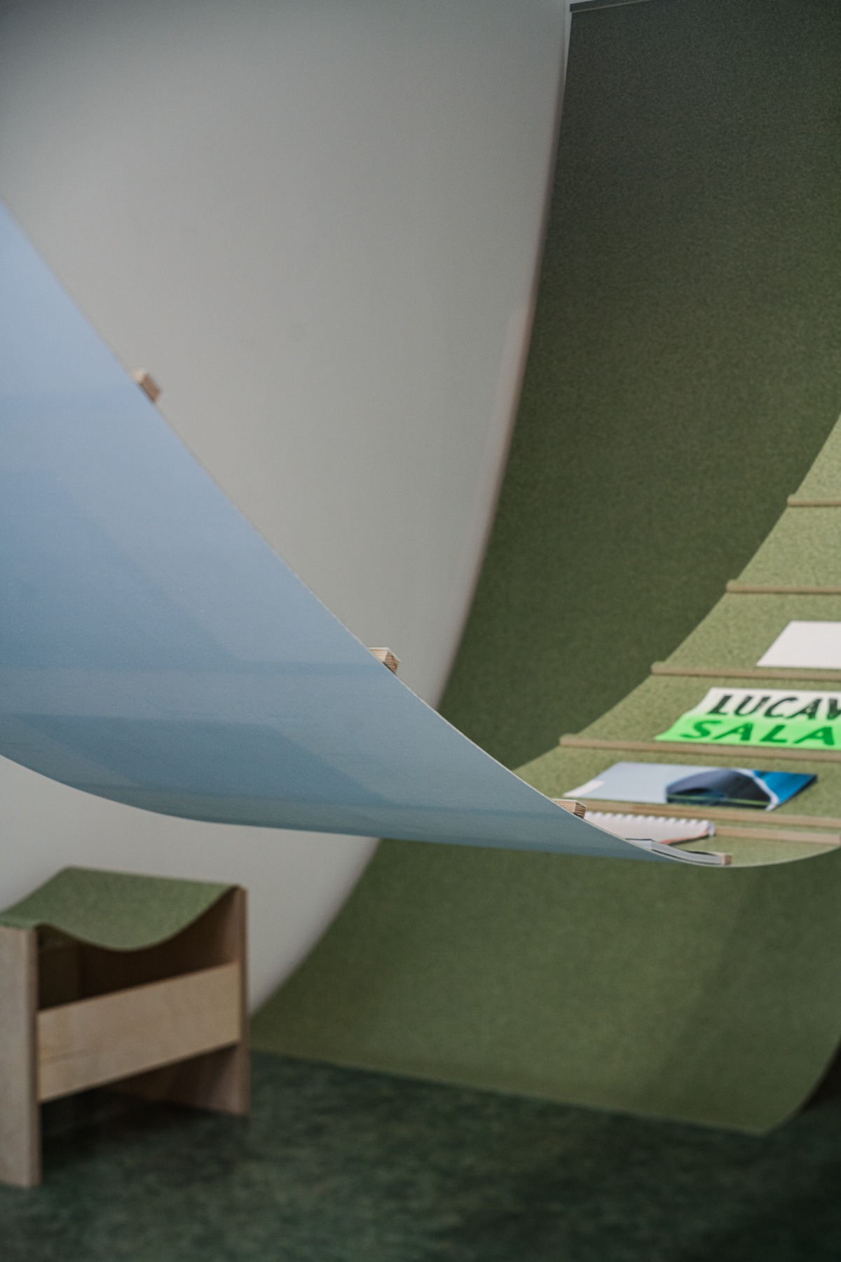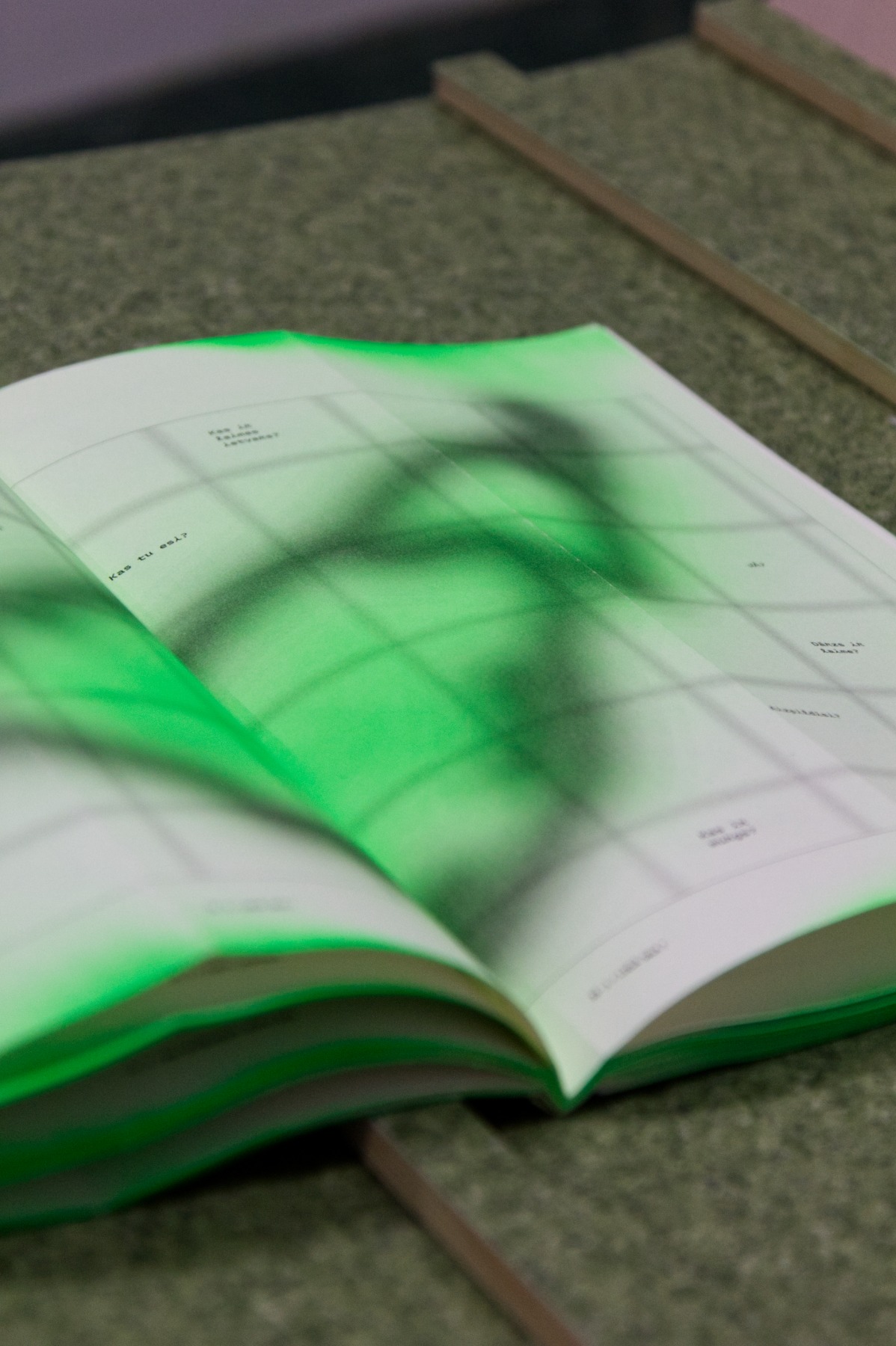 “Gaiss” arhitektu veidotajā telpiskajā instalācijā iemājo mākslinieku, arhitektu un dizaineru – Evitas Vasiļjevas ( publikācijas izdevējs Kim? Laikmetīgās mākslas centrs ), Paula Rietuma, Agneses Bebres, Kitijas Pekaines, Maikes Statz (publikācijas izdevējs Hverdag Books, Norvēģija ), Lienes Pavlovskas un Svena Neilanda – zīni un publikācijas, kā arī Olivias Viitakangas un Sauli Sirviö darbi (publikācijas izdevējs Utu Press, Somija) un un žurnāla “Avīzes Nosaukums” numurs, ko veidojuši Elīza Brice un Kristaps Šulcs.