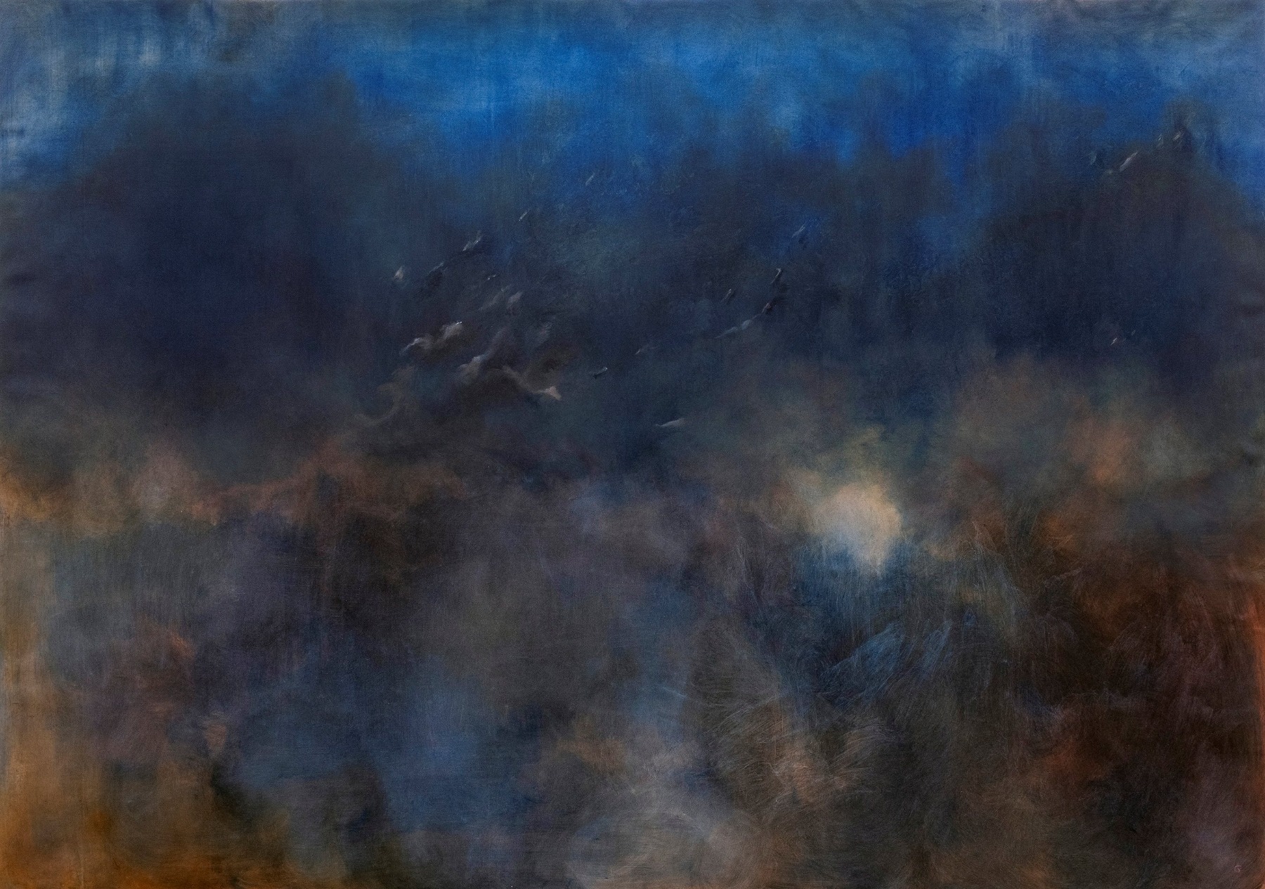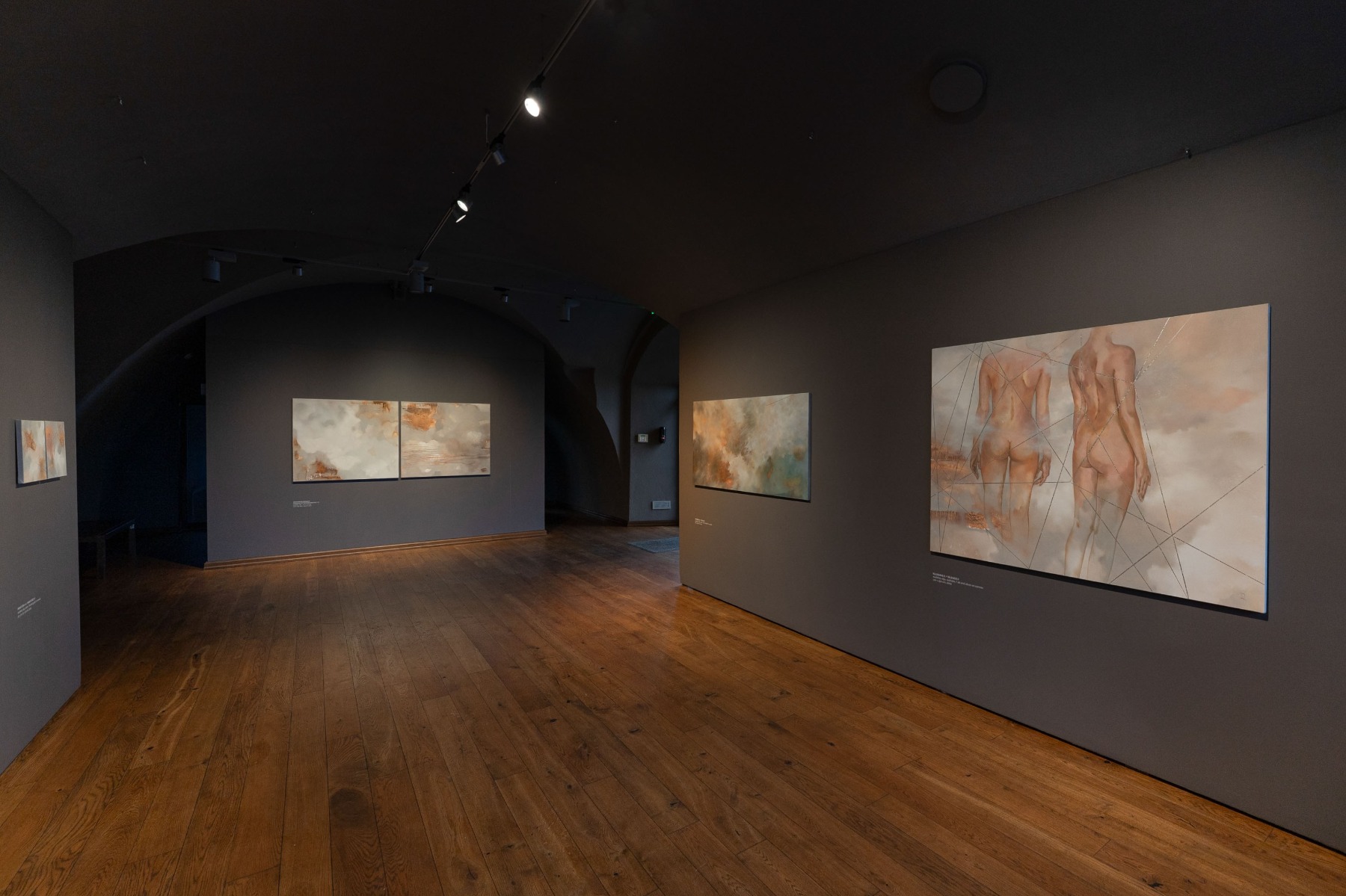 Lietuviešu mākslinieces Diānas Rudokienes jaunrade pēta trauslo robežu starp redzamo un neredzamo, atklājot viņas ilgstošo aizraušanos ar zemapziņu, atmiņu un transformācijas procesiem. Gleznojot caurspīdīgu krāsas slāņu un smalku toņu pāreju piesātinātos laukumos, māksliniece rada sapņainas noskaņas piestrāvotas telpas, kurās tēli šķiet izirstam gaismas un gaisa virmojumos, iezīmējot mums visiem kopīgu cilvēcisko emociju ainavu.
