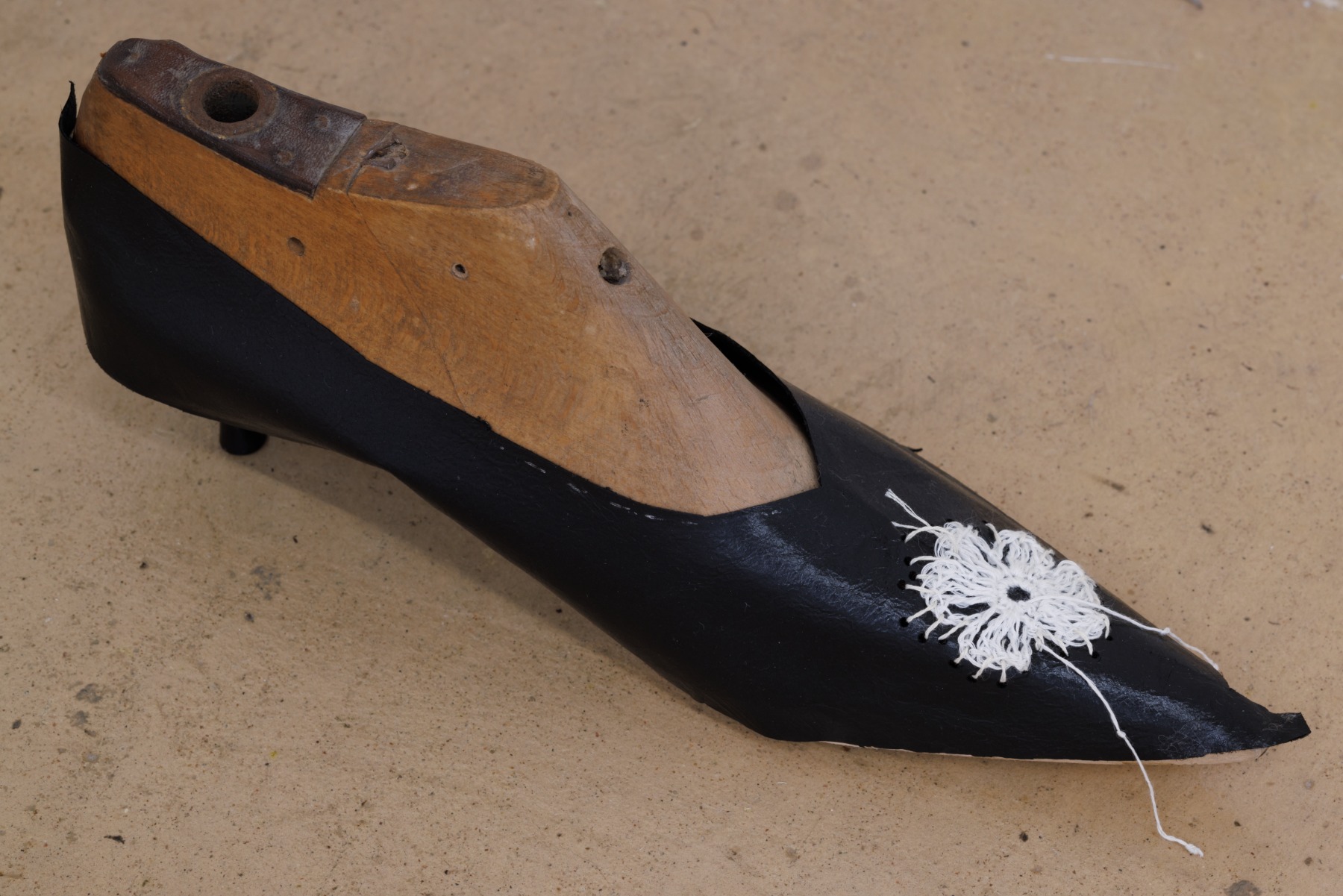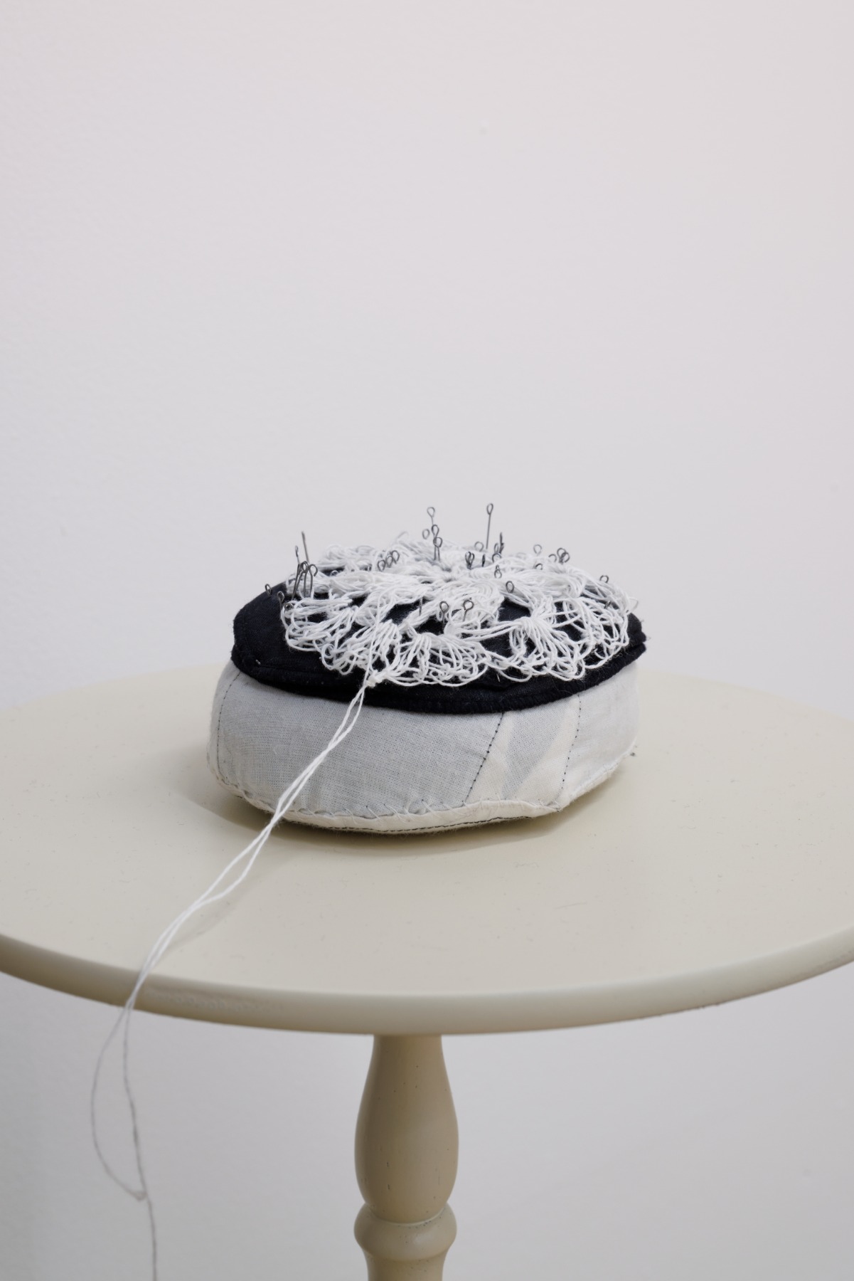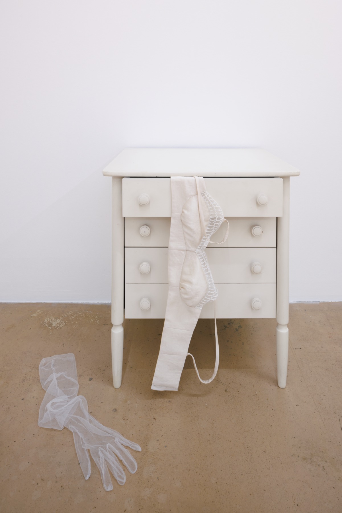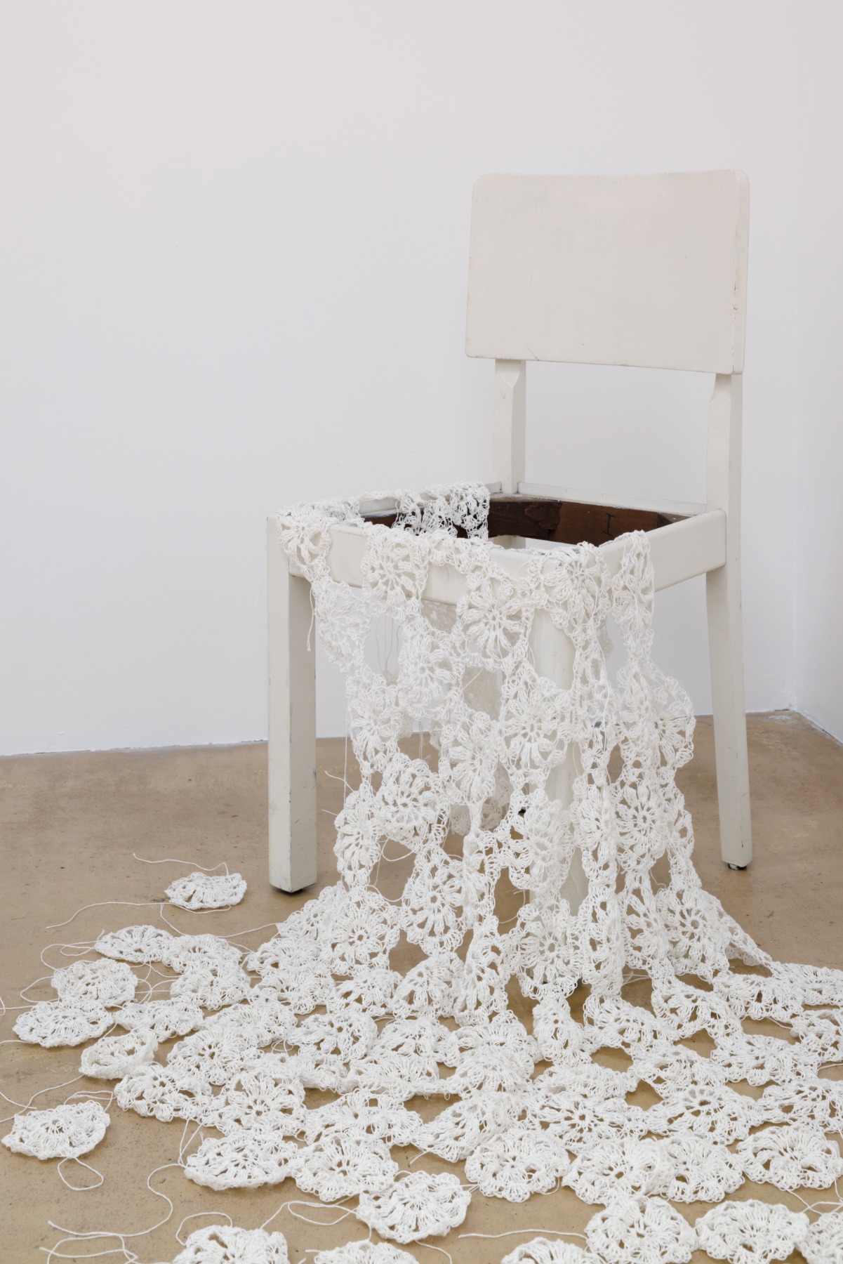 Izstādes centrā ir “nospiedumu” metode – tekstila slāņojumi, presēti un kombinēti mežģīņu, diegu, aušanas un apģērbu fragmenti. Tie izvietoti gan rāmējumos, gan telpiskās grupās kā veltījums latviskajai amatniecībai un tās materialitātēm.