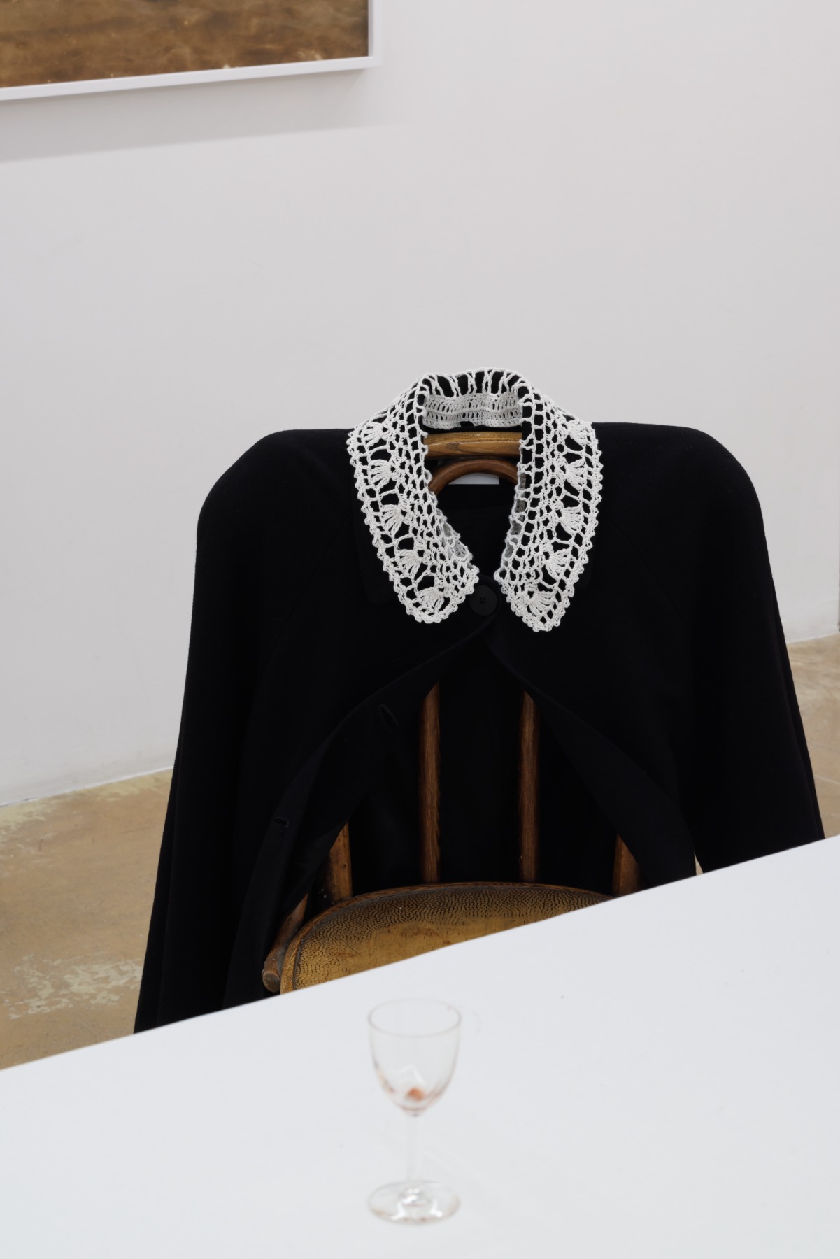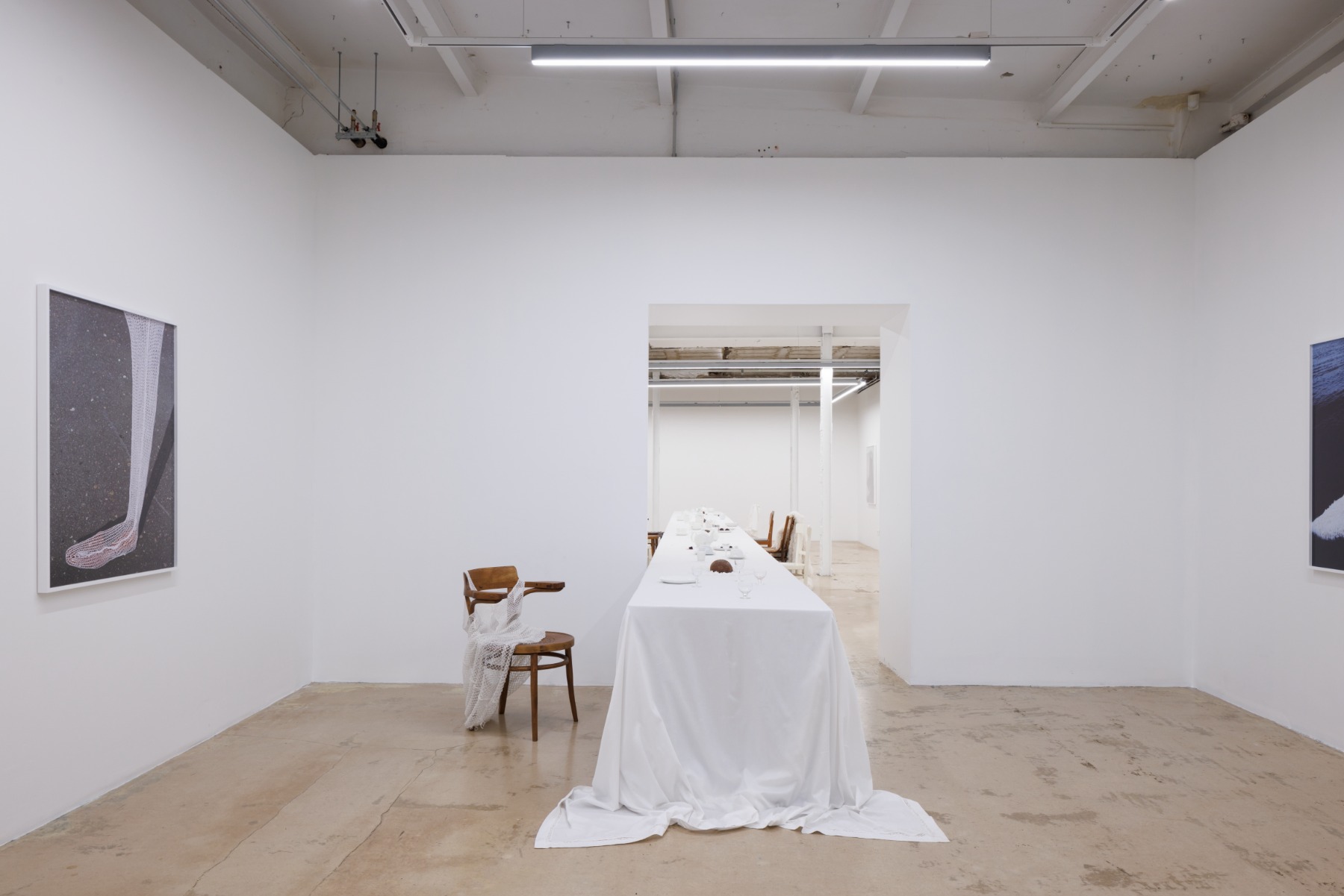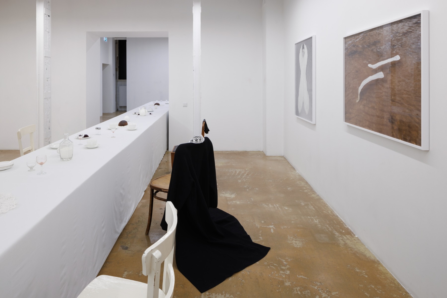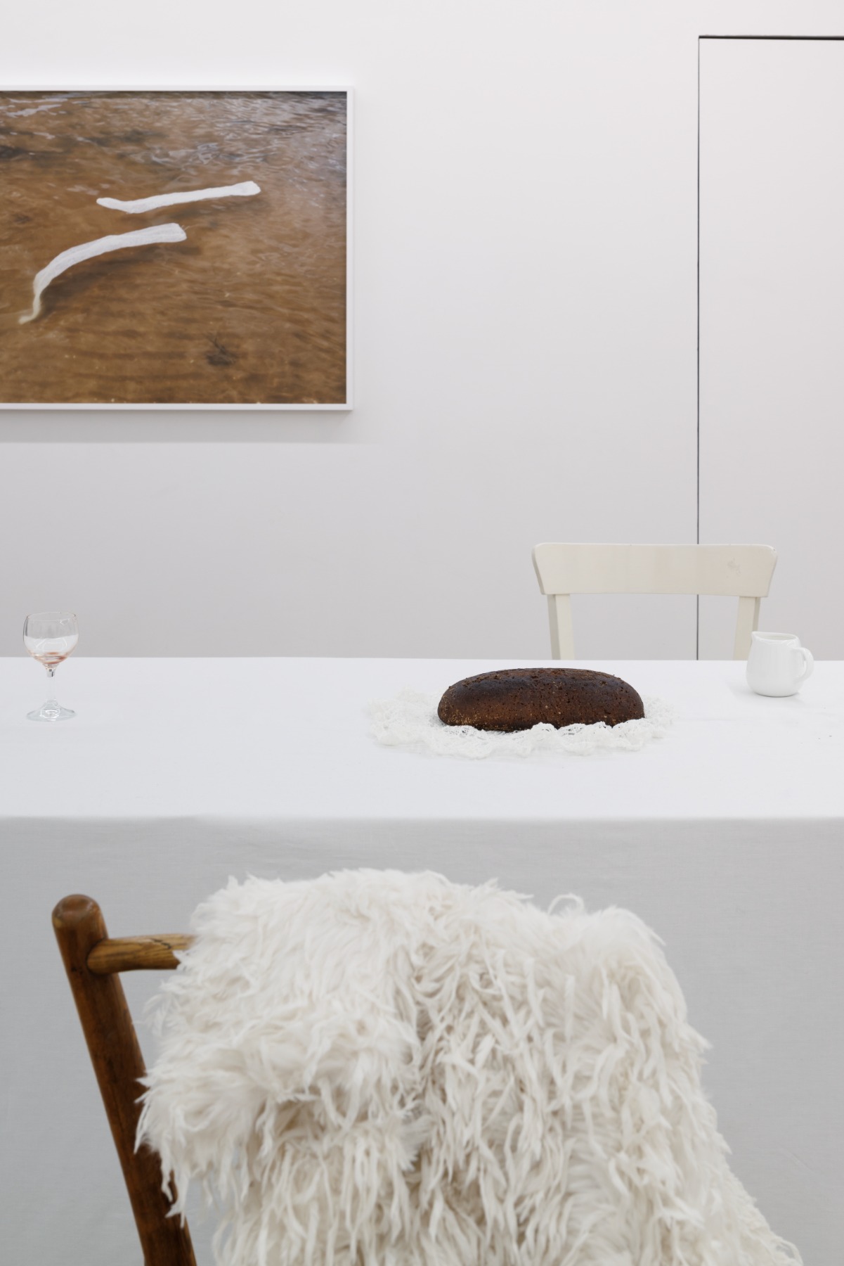 Izstādes noslēgumā scenogrāfes Halimas Dārvišas radītā instalācija – gara galda veidota satikšanās vieta – kā skatuve amatniecības tehnikām, sarunām un rituāliem.