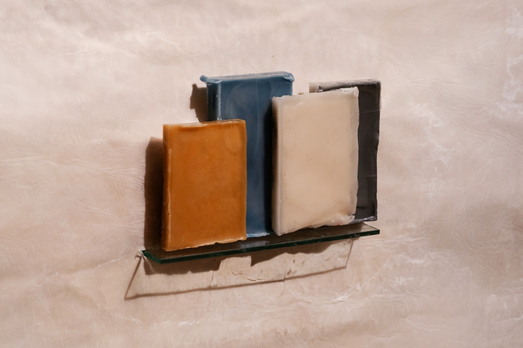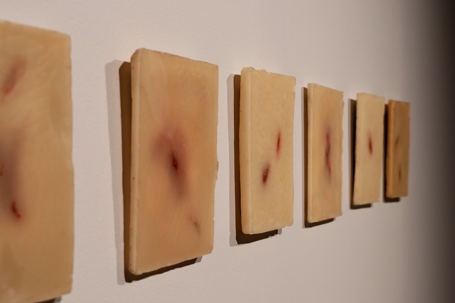 Gregorio Bota. Puksti. Vasks, pigments. 20x20 cm (katrs). 2023