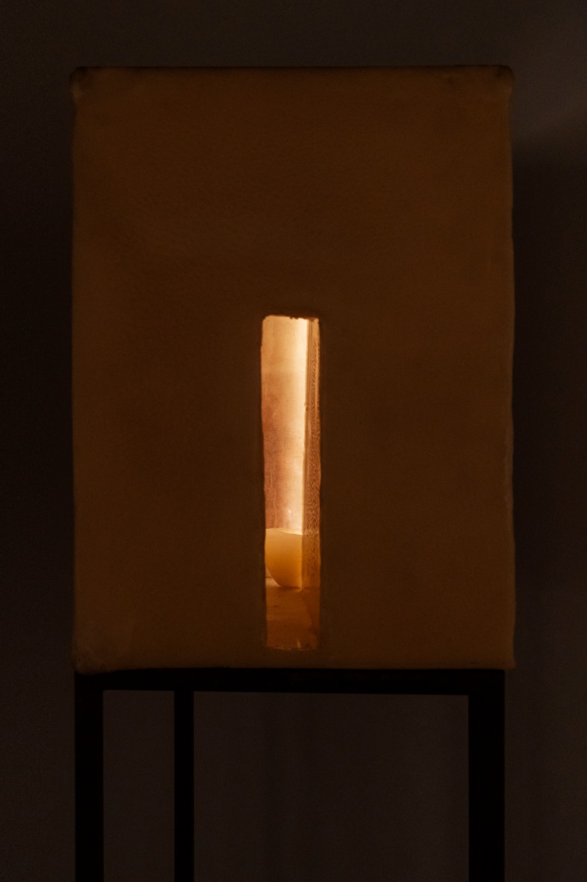 Gregorio Bota. Bez nosaukuma. Rīspapīrs, vasks, stikls. 180x100 cm. 2026