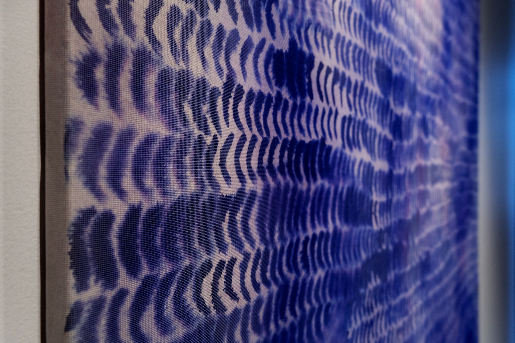 Rozmarija Torpo. Sapnis (zili violets). Poliesters, audekls, tinte, akrils, krāsas aerosols. 180x170 cm. 2023