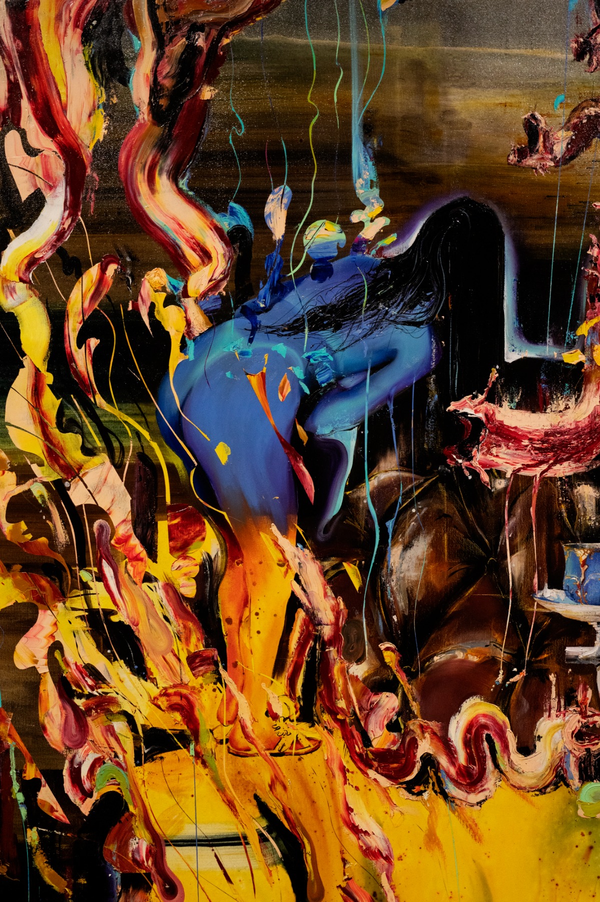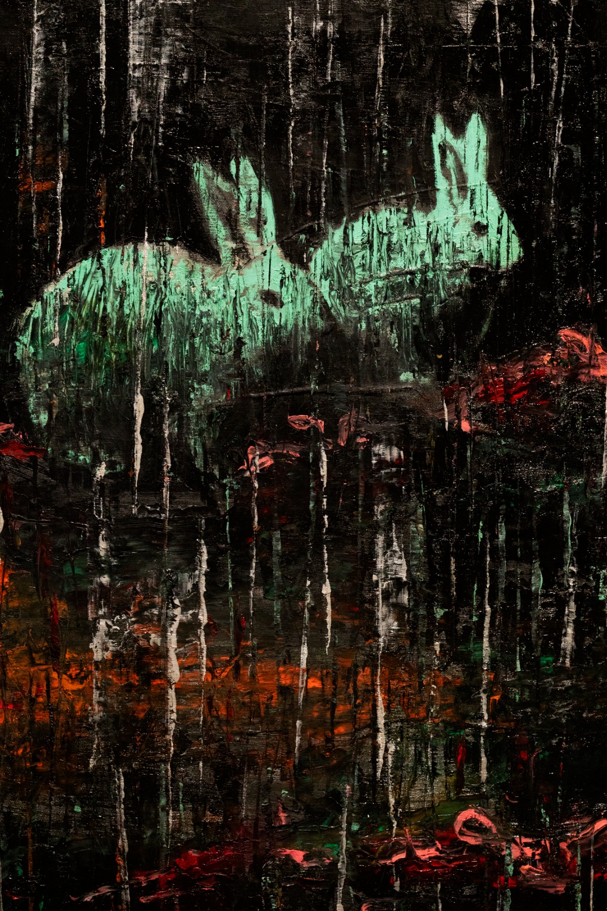 RZ kolekcija. Klāvs Loris. Eiropas deja mūžīgā tumsā. Audekls, eļļa, tekstils, pigments, laka. 170x140 cm. 2022