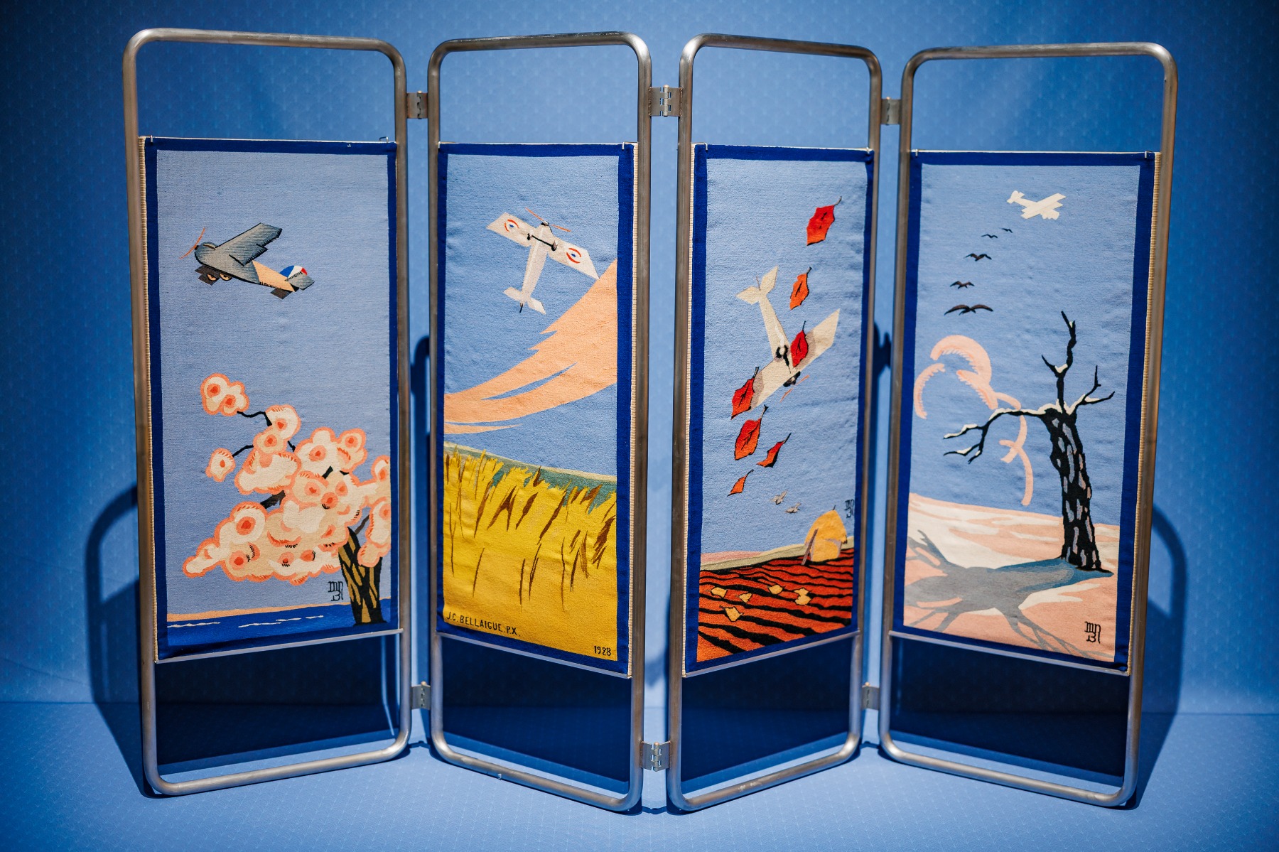 Plakātu mākslinieka un ilustratora Žana Kamila Belēga sērija “Les Avions” tika austa Buvē manufaktūrā no 1927. līdz 1930. gadam, metāla konstrukcijas izstrādāja dizainers Žoržs Buržuā saukts Džo un ražoja Thonet.