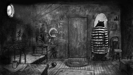 При создании фильма была сохранена первоначальная техника – уголь по бумаге. Было желание избежать очевидных приёмов цифрового мира, которые хоть и предлагают более удобные и скоростные методы создания, но всё-таки накладывают свой визуальный отпечаток. Конечно, мы использовали в рабочем процессе компьютер (и сканируя рисунки, и монтируя их вместе), однако сама анимация создавалась классически – углём на бумаге. С одной стороны, уголь неподатлив – он сыплется и мажет, но в то же время с ним интересно работать: например, придумывая фон для «Урсуса», мы к нему подсыпали порошок охры и опилки, создавая таким путём разные фактуры. Рисунок углём – настоящий и живой, и это – большая ценность.