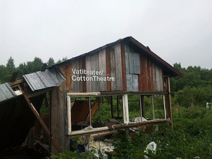 Ne velti teātrim tāds nosaukums – sašķiebtā ēka bez sienu un logu ir no vienas vietas pilna ar vatējumu. Stērbelēs tas nokarājas no griestiem, mučkuļos noklāj grīdu, pa vidam kāds neiaznests dīvāns un galds. Bet mīkstais, baltais materiāls ir pilnīgi visur, liedzot saprast, kas te ir noticis.