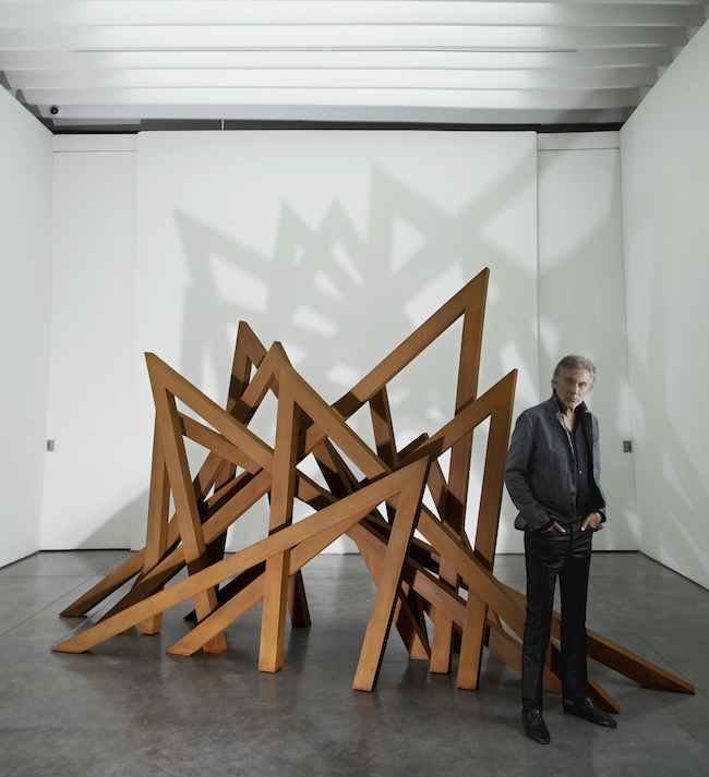 Bernar Venet in front of an Angles sculpture on the occasion of the opening of his show at Paul Kasmin Gallery, New York, in April 2016. Photo: Steve Benisty, New York