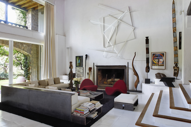 The living room in the Moulin with Arman, Motherwell, and Stella, and furniture by Venet, Le Muy. Photo: Jean-François Jaussaud / Luxproductions.com, Paris