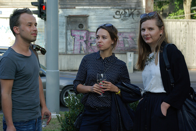 No kreisās: Katrīna Ģelze, Elīna Sproģe, Arnis Balčus