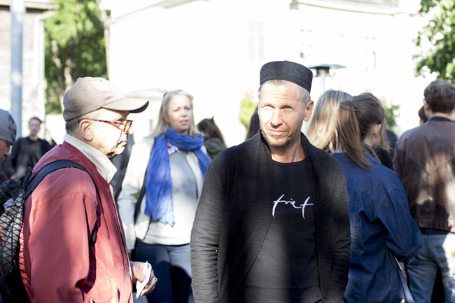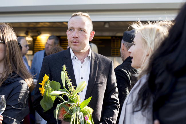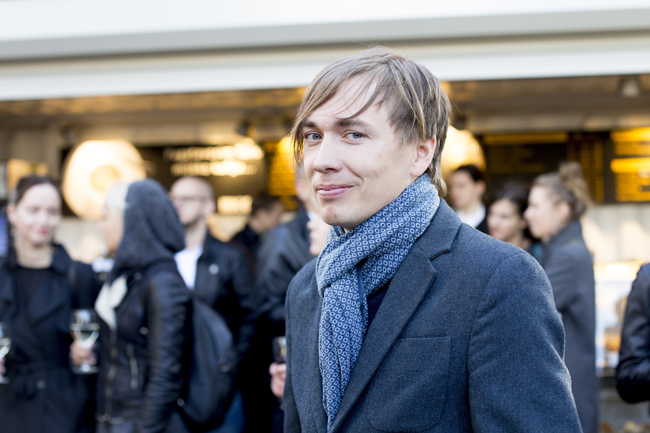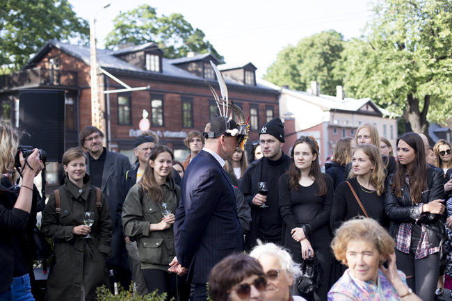 Miķelis Fišers savu darbu “Nemūžamnepiedošanas ekspresis” atklāja ar performatīvu iznācienu maskā – šķiet, pat pārsteidzot pasākuma organizatorus.