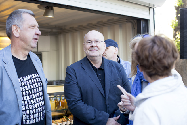 No kreisās: mākslinieks Guntars Sietiņš, mākslas kritiķis un kurators Ivars Runkovskis