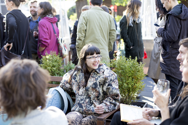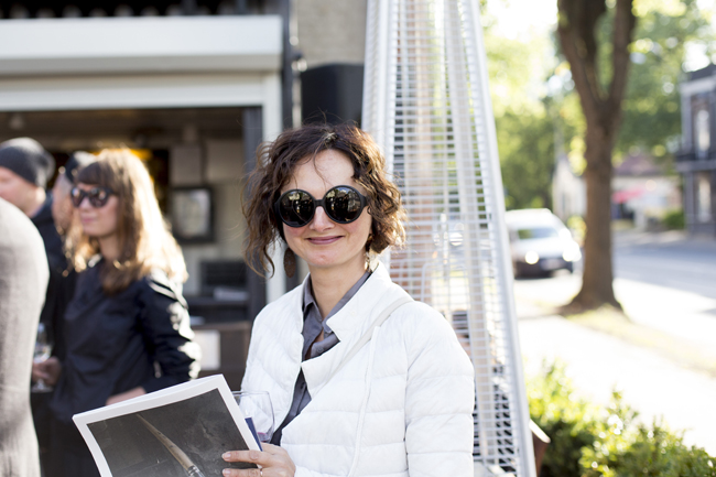 No kreisās: kuratore Elīna Sproģe, māksliniece Katrīna Ģelze