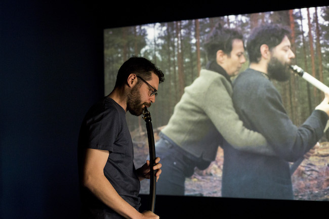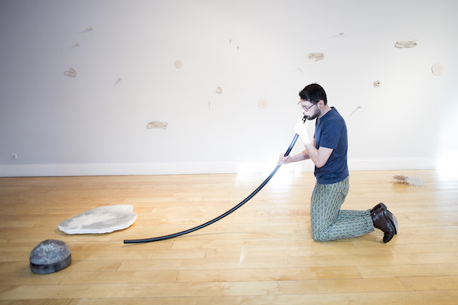 Atklāšanas vakarā vairākkārt bija skatāma Andrē Vidas performance, kuras laikā viņš, spēlējot paštaisītu mūzikas instrumentu, komunicēja ar vienu no izstādes objektiem – kustīgu, ceļojošu akmens cepuri – Wanderlust, kas, mūziķa radīto skaņu pavadīts šķērsoja galerijas telpu, nemitīgi atdūrās pret dažādiem priekšmetiem, mainīja virzienu, tā meklējot brīvību un turpinot ceļot. Šis objekts tapis izstādes autoriem sadarbojoties ar Beatrisi Gori.