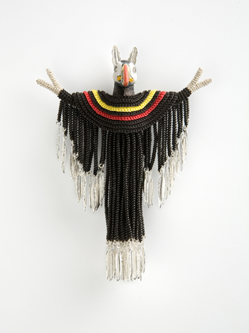 Broša The End 4. 2013. Ar sudrabu, ādu, stikla pērlītēm. 12 x 11 x 4 cm