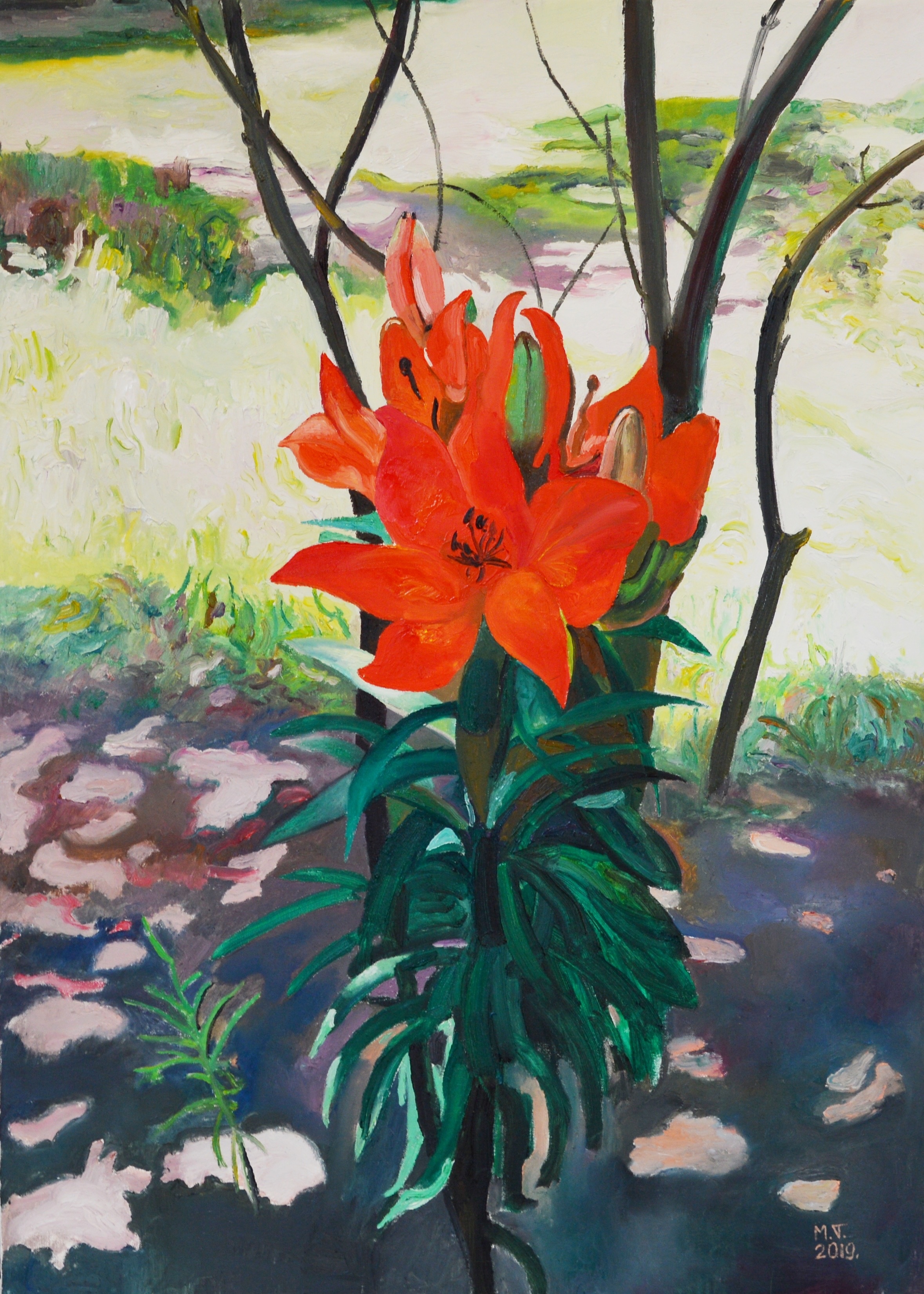 Maija Tabaka. Lilijas. 2019. audekls/eļļa, D 50 cm