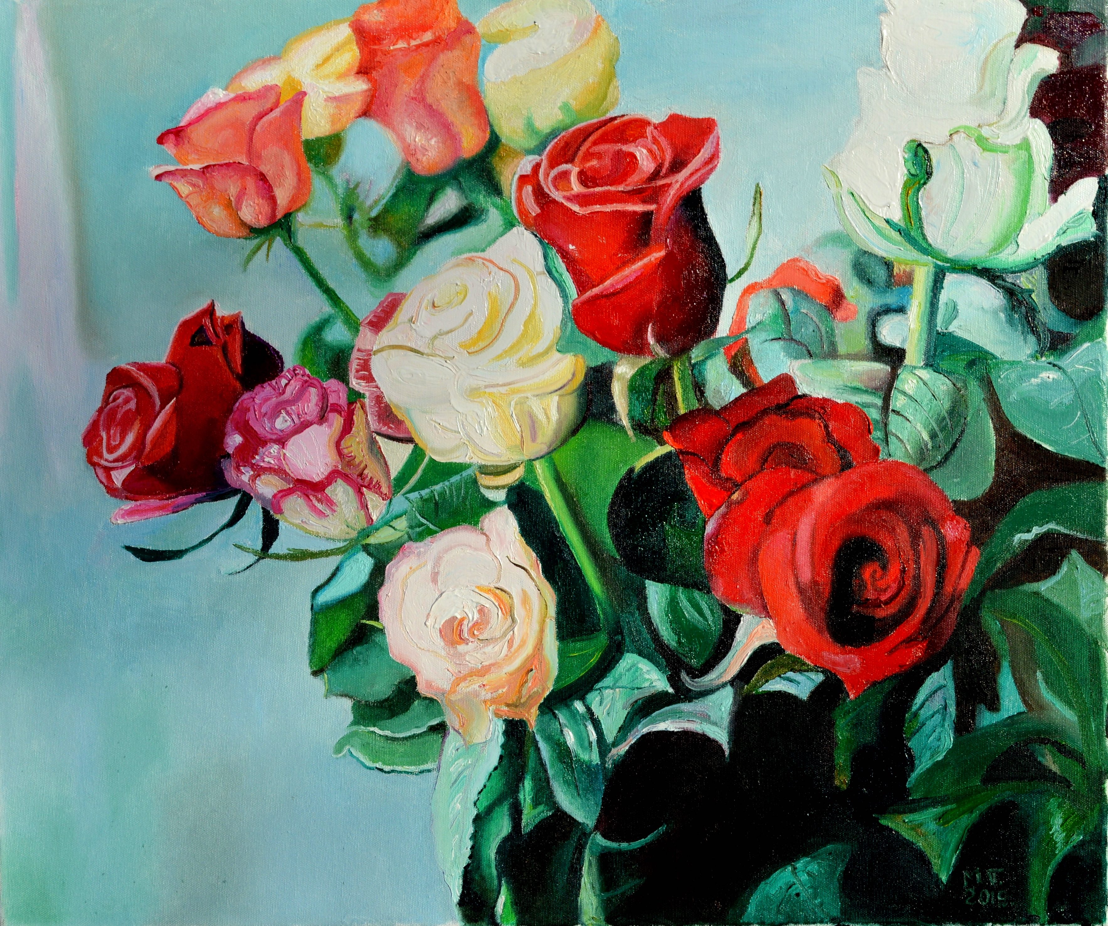 Tie nav tapuši saspringumā. Es tos gleznoju savam vīram, jo zinu, ka viņam ļoti patīk, kad gleznoju ziedus. Tie viņu iepriecina. Es ļoti bieži darbus gleznoju konkrētai auditorijai. Precīzāk sakot, konkrētiem cilvēkiem. Es šos ziedus esmu veltījusi savam vīram, jo redzu, kā viņš uz tiem skatās. Ar lielu sirsnību un mīlestību. Tas man sagādā prieku. Manas iekšējās mokas un ciešanas mākslā netiek izpaustas. Personīgā līmenī neredzu tam jēgu. Liekas, mani darbi ir tādi viegli, it kā viss atrastos lidojumā.