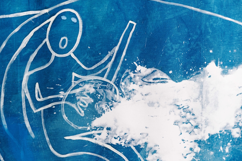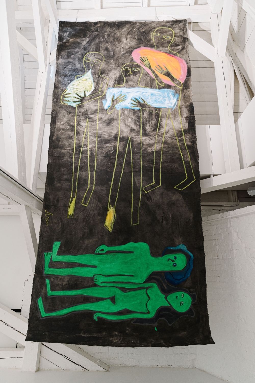 Gleznojot audekli atrodas uz grīdas, horizontāli. Vai vertikāli tu tos pirmoreiz ieraugi tikai izstāžu zālē?