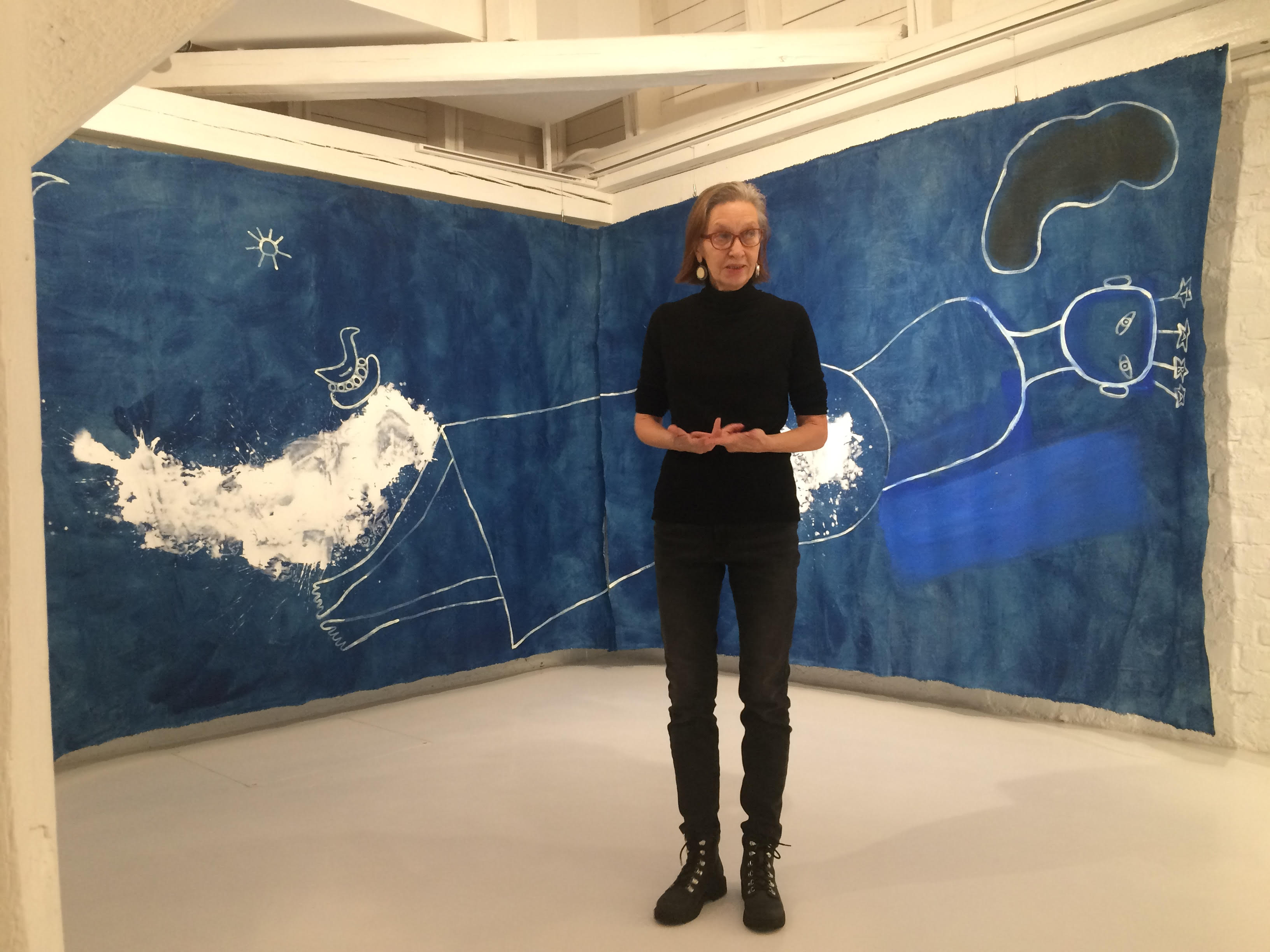 Tas iznāca pats no sevis. Kad radās iecere, es sāku domāt, kurā vietā es varētu gleznot tādus piecmetrīgus audeklus. Un vēl piedevām pati tos audeklus sagatavot, gruntēt. Tad es aizbraucu uz Saldu, jo kādreiz vadīju tur mākslas studiju. Viņiem bija piešķirtas trīs lielas telpas, un pa vasaru tās bija brīvas. Tad es nopirku ledusskapi un želatīnu un sāku pati tur uz grīdas gruntēt. Vecā skola, kur atrodas studija, pati ir uz kalna, varētu teikt, ka pilskalna. Tāda enerģētiska vieta.