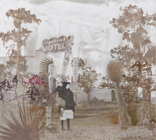 Ieva Iltnere. “Indiānis ar bērnu un japāņu līgavu Fei-Fei pie klaidoņu moteļa.” 2015. Foto: Renārs Derrings