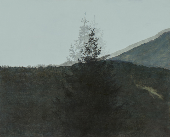 Dzelzceļa muzejā apskatāmajā izstādē “Lielāks miers, mazāks miers” ir kāda gluži burtiska ilustrācija “metafiziskās novilces teorijai”. Tās ir gleznotājas Zanes Tučas ainavas. Padrūmi tumsnējos dabasskatu kadrējumus māksliniece vēl tīšuprāt it kā dubulto, vienu attēlojuma slāni nedaudz nobīdot no otra. Pavisam nedaudz, bet pietiekoši, lai ainava iegūtu gluži neainavisku pēcgaršu vai varbūt tieši otrādi – sniegtu norādi uz ainavisma patieso “seju”. Jo vai tad nav tā, ka, vērojot ainavu, vienalga, dabā, televizorā vai gleznā, mēs pārsvarā aizmirstam to, ka jebkurš kadrējums, materiālās pasaules izgriezums ir tik vien kā subjektīvas patvaļas akts, kam ar lielo patiesību nav nekāda sakara? Plenērā gleznots krūms vienmēr būs tikai kaut kas novilkts, pavilkts sānis. Protams, pavērsies sprauga starp krūmu1 un krūmu 2, un pa šo spraugu varbūt izdosies saskatīt kaut ko no patiesības. Zanes Tučas glezniecība, man šķiet, kaut kādā ziņā rosina domāt tieši tādā veidā.